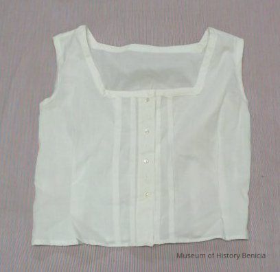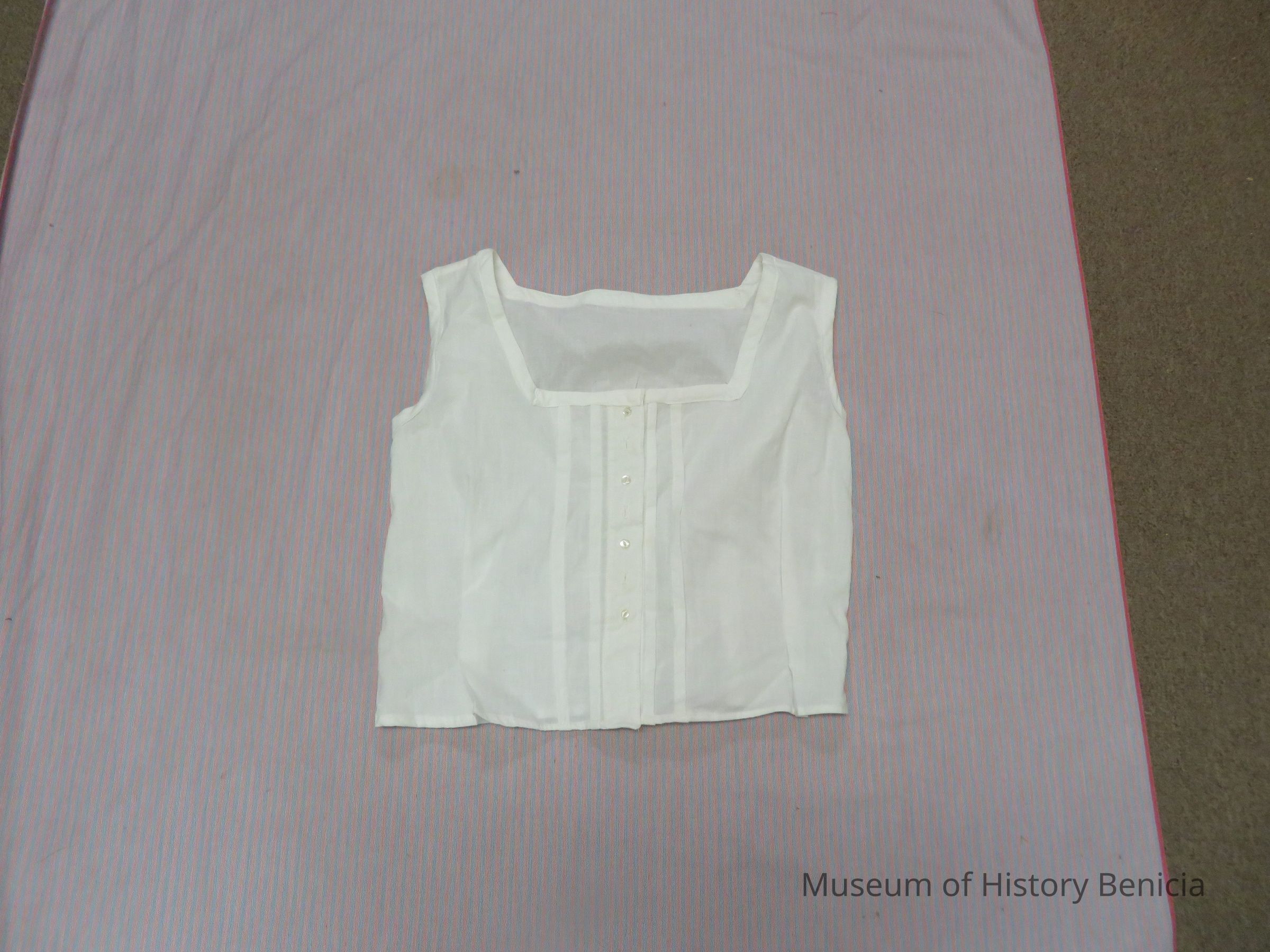 Camisole - white cotton with pleated front and seven pearlized buttons