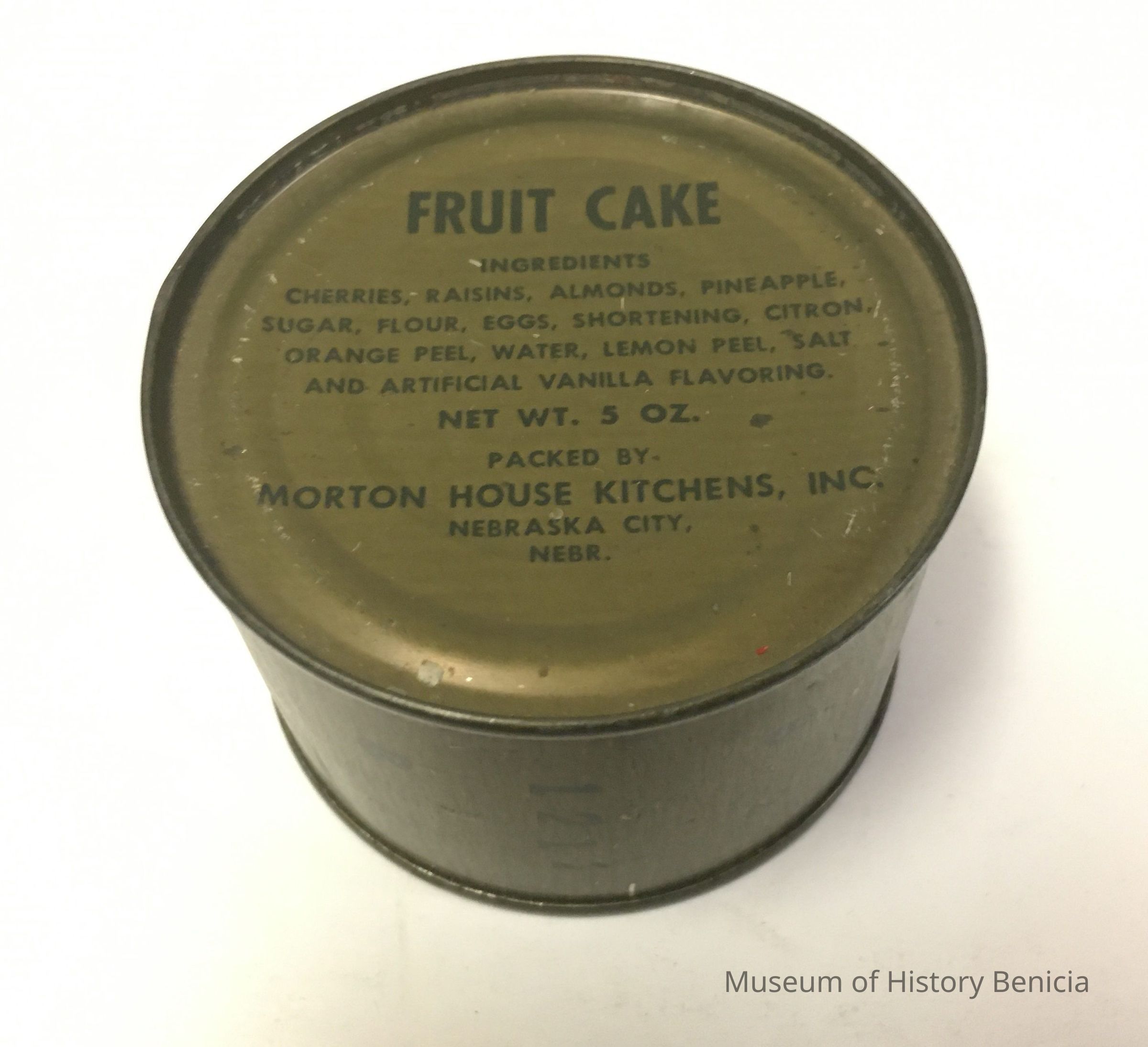 Unopened can of US Army rations. Vietnam era c1967. Measures 3 inches in diameter by 2 inches high. Steel can with food grade coating.