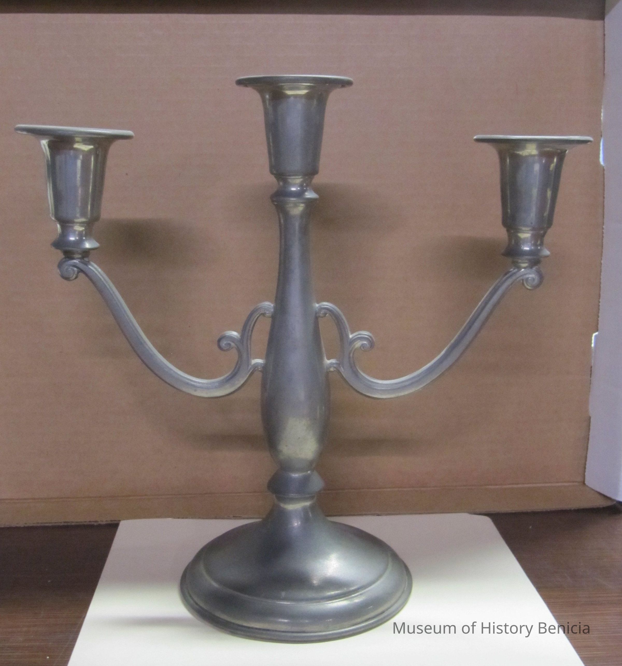 Three-tiered pewter candlestick that once belonged to the Dominican nuns at St. Catherine's Academy.