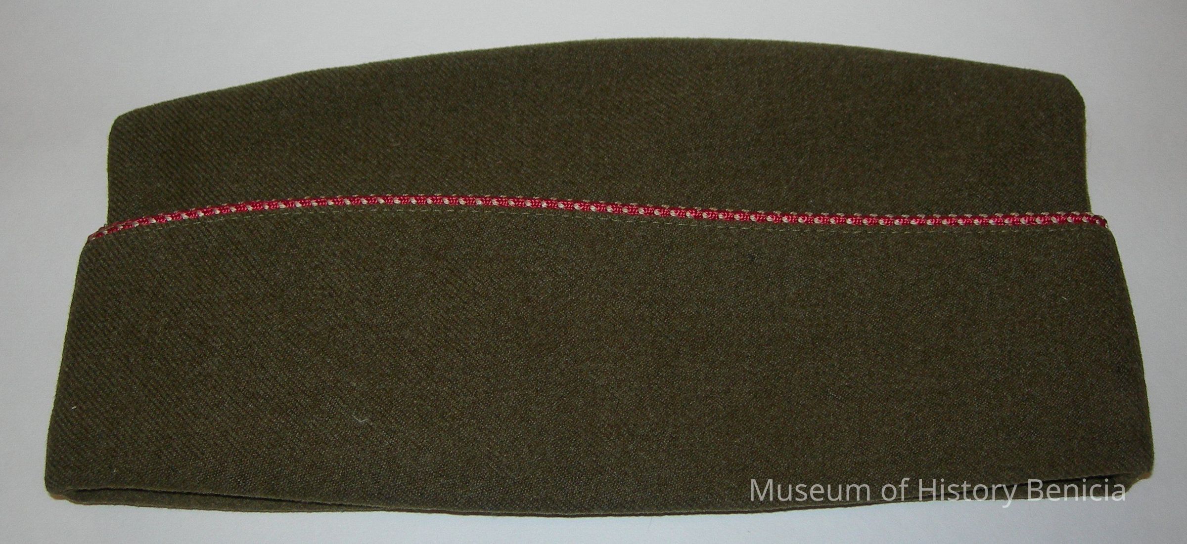 Garrison Cap - Khaki green wool w/red and white piping;