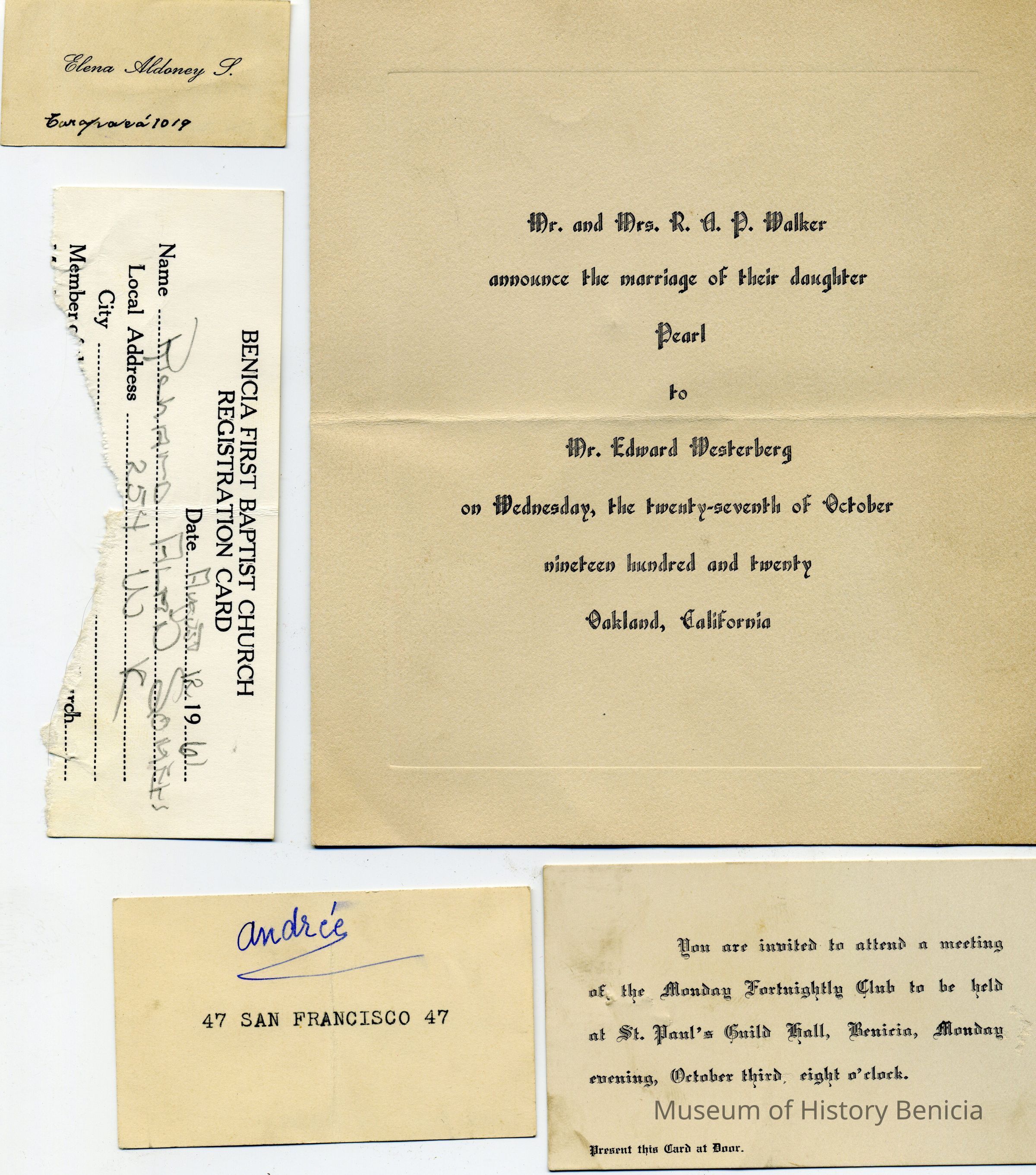 4 invitation to Monday Fortnightly Club at St Paul's in Benicia