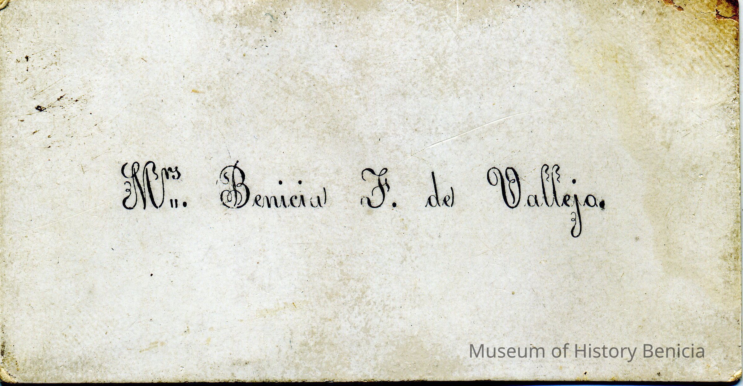 Calling card for: Mrs Benicia F de Vallejo
