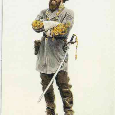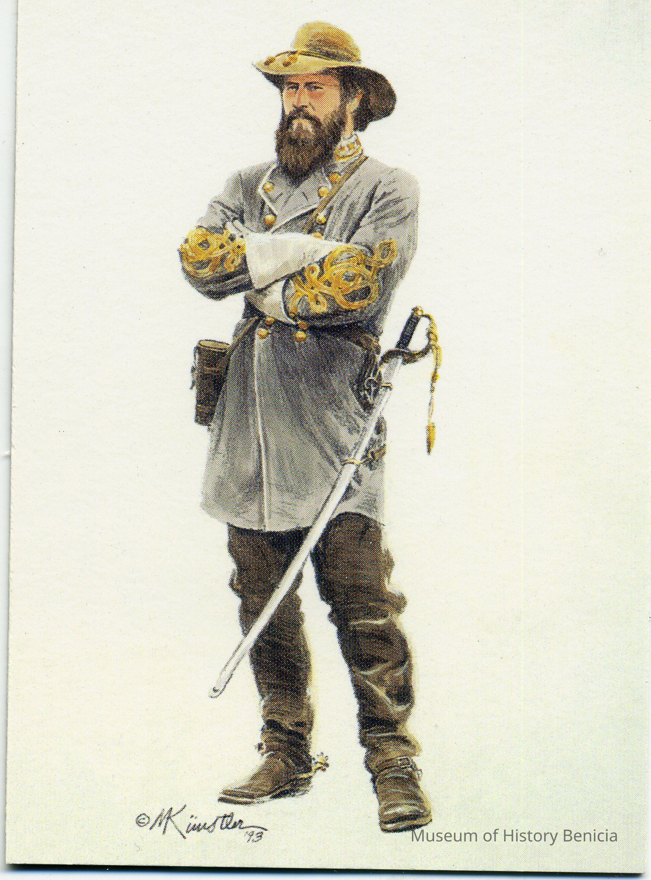 A collectors card for the Civil War from the Keepsake Collectibles company. The set is called "The Blue and the Gray - Civil War Art by Mort Kunstler. Each card has a scene/person on one side and the history of that scene or person on the other side.