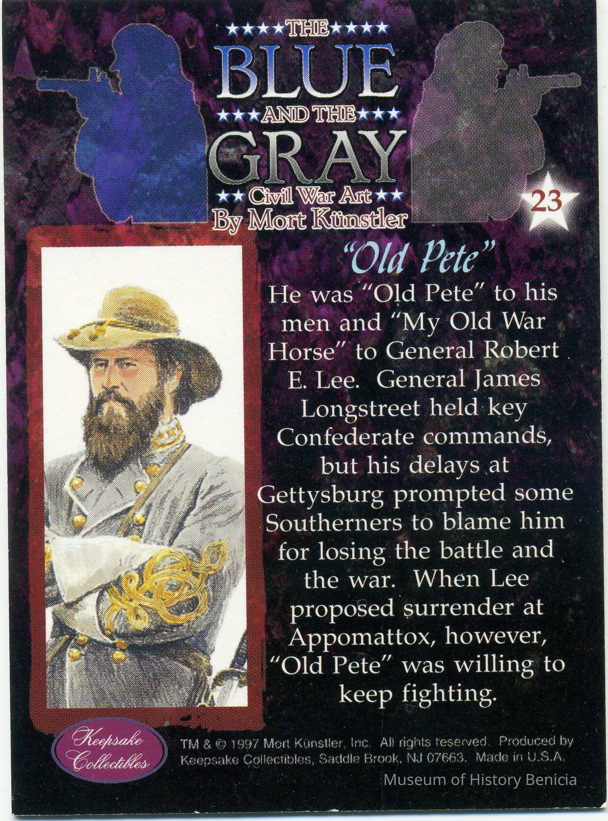 This card (#23) is called "Ole Pete". It talks about General James Longstreet. There are three copies of this card.Collection