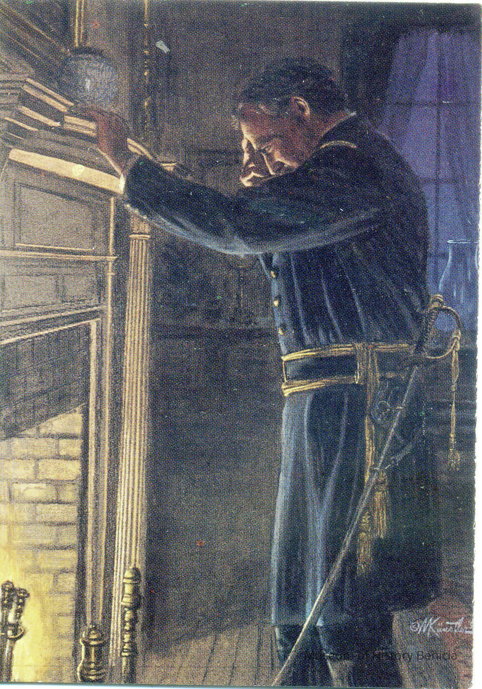 A collectors card for the Civil War from the Keepsake Collectibles company. The set is called "The Blue and the Gray - Civil War Art by Mort Kunstler. Each card has a scene/person on one side and the history of that scene or person on the other side.