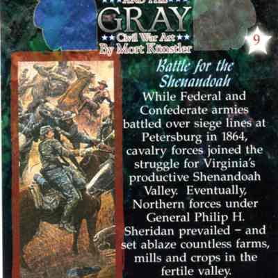 This card (#9) is called "Battle for the Shenandoah". It talks about Gen Sheridan and the battle for the Shenandoah Valley. There are three of these cards.Collection