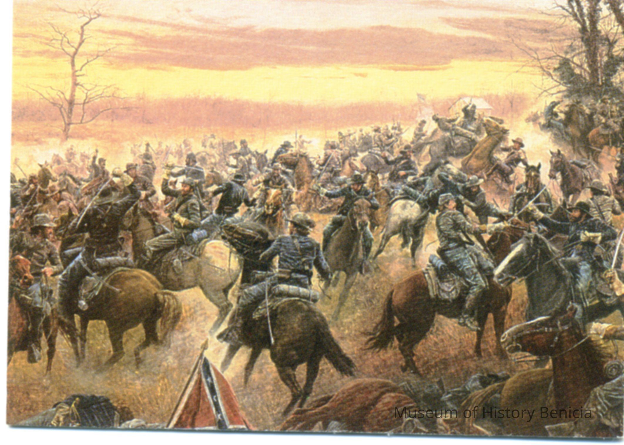 A collectors card for the Civil War from the Keepsake Collectibles company. The set is called "The Blue and the Gray - Civil War Art by Mort Kunstler. Each card has a scene/person on one side and the history of that scene or person on the other side.