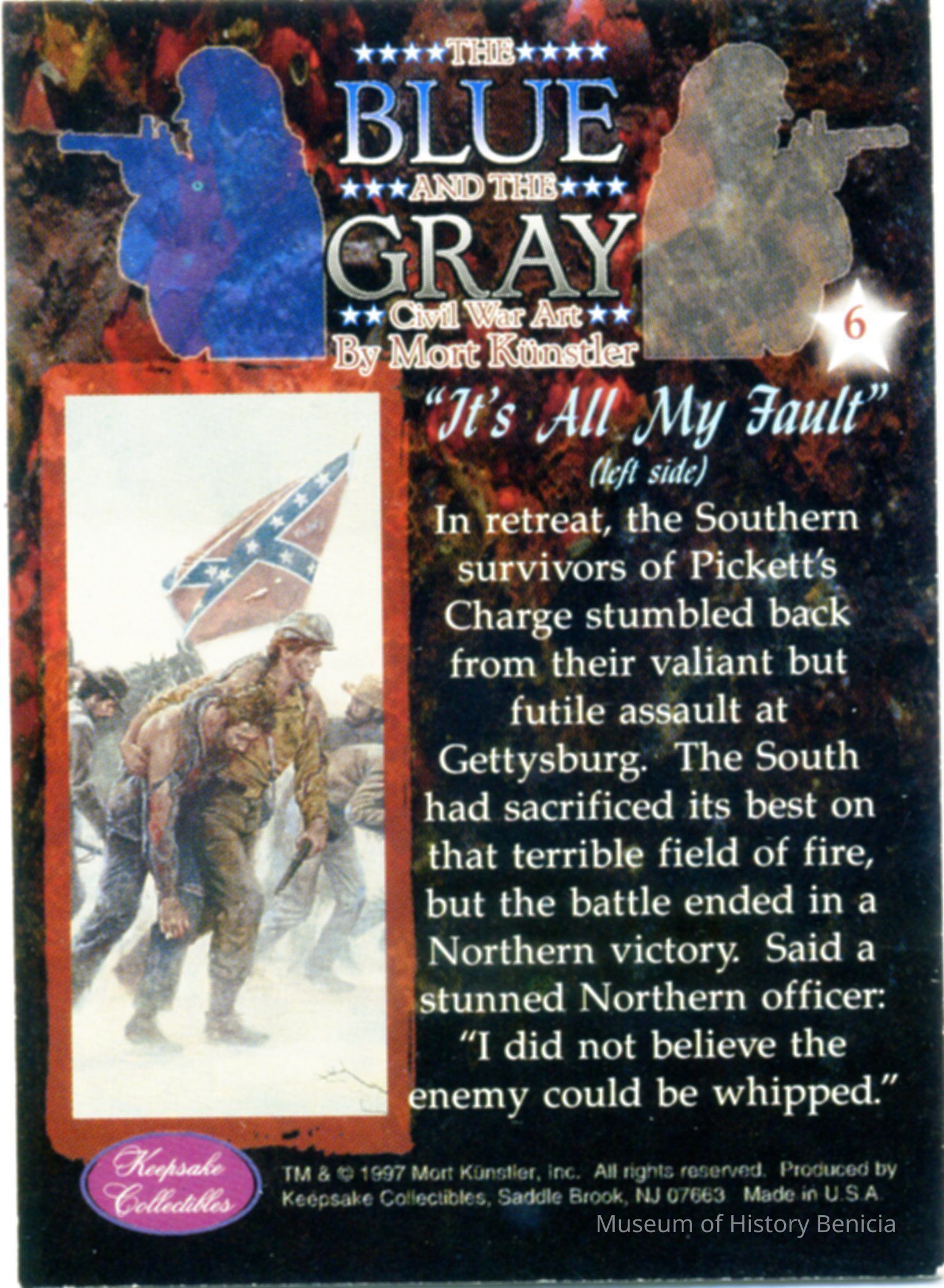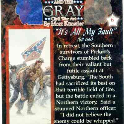 This card (#6) is called "It's All My Fault". It talks about the battle at Gettysburg and Pickett's Charge. There are two of these cards.Collection