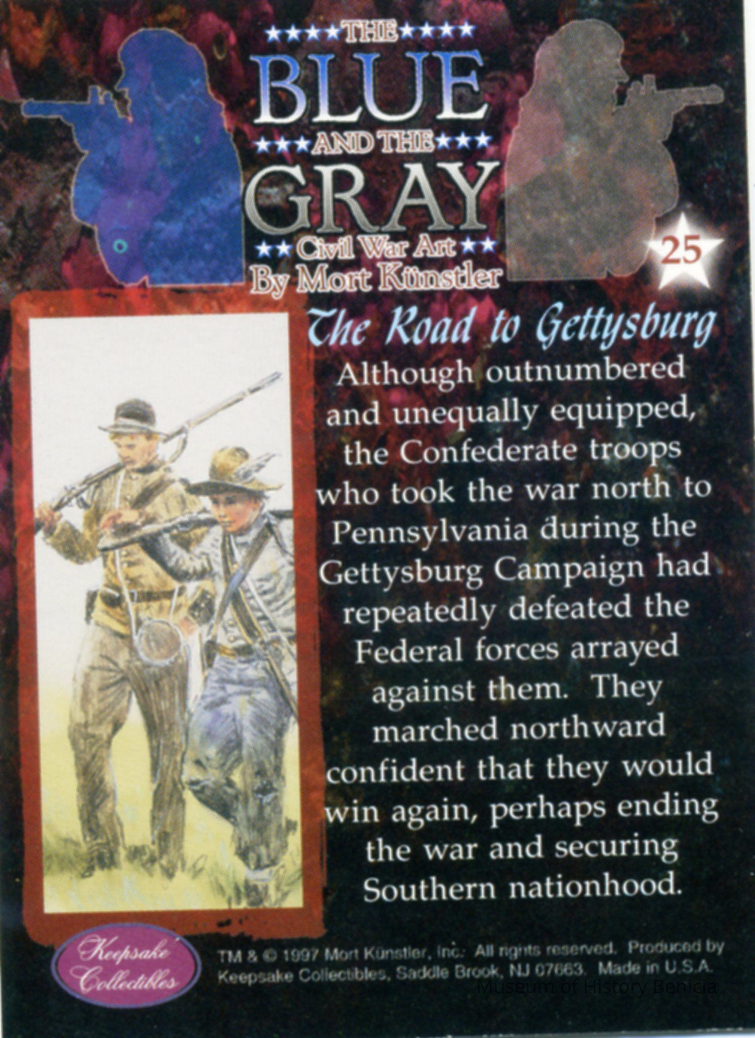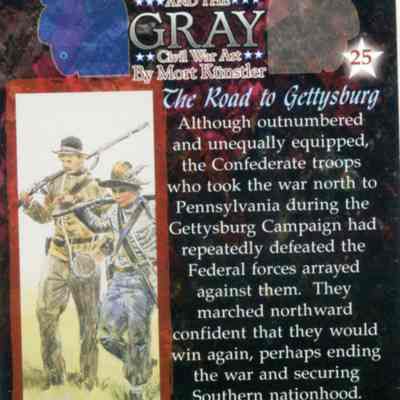 This card (#25) is called "The Road to Gettysburg". It talks about the Southern march North to Pennsylvania and there expectation of continuing victories. There is only one of these cards.Collection
