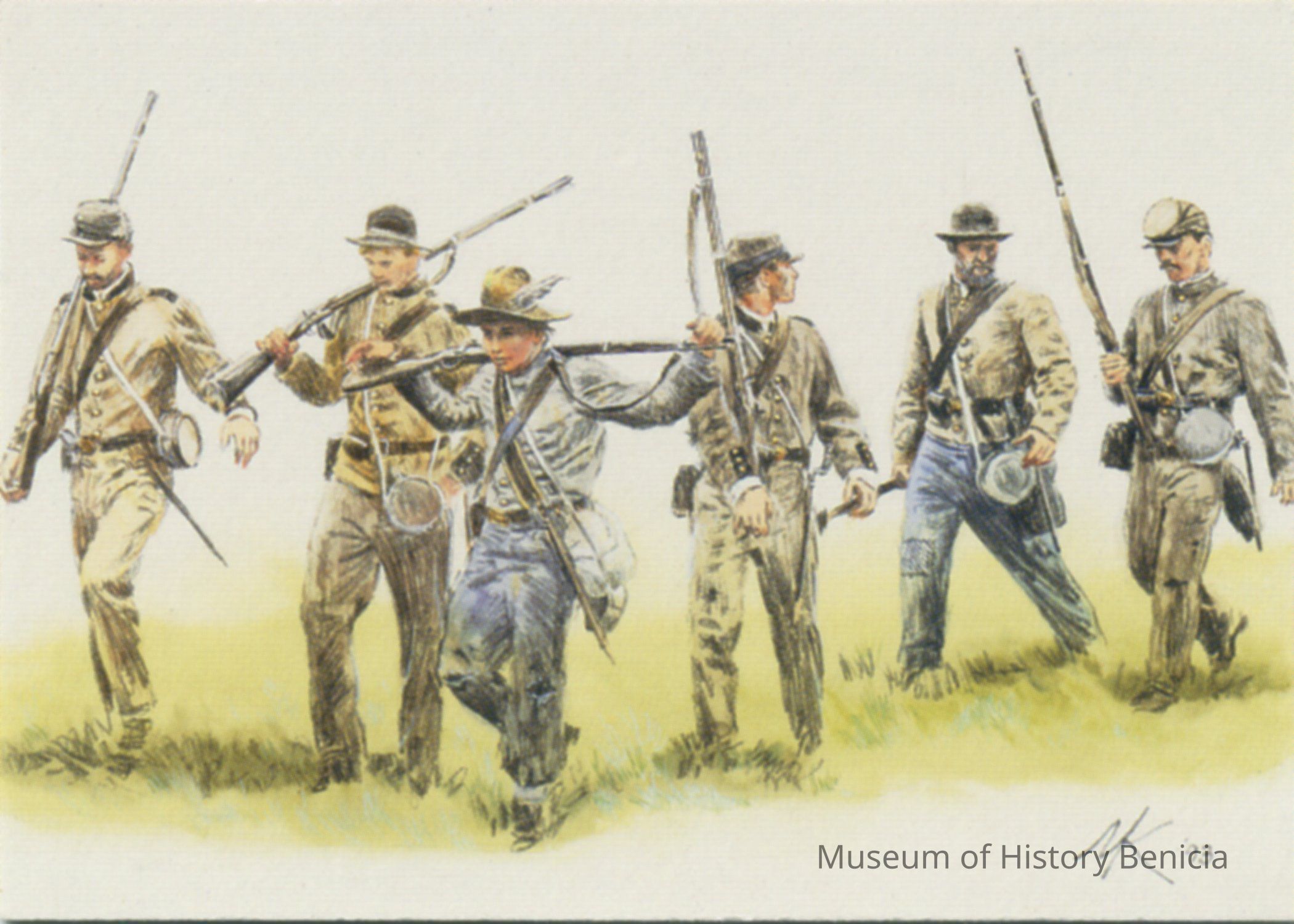A collectors card for the Civil War from the Keepsake Collectibles company. The set is called "The Blue and the Gray - Civil War Art by Mort Kunstler. Each card has a scene/person on one side and the history of that scene or person on the other side.
