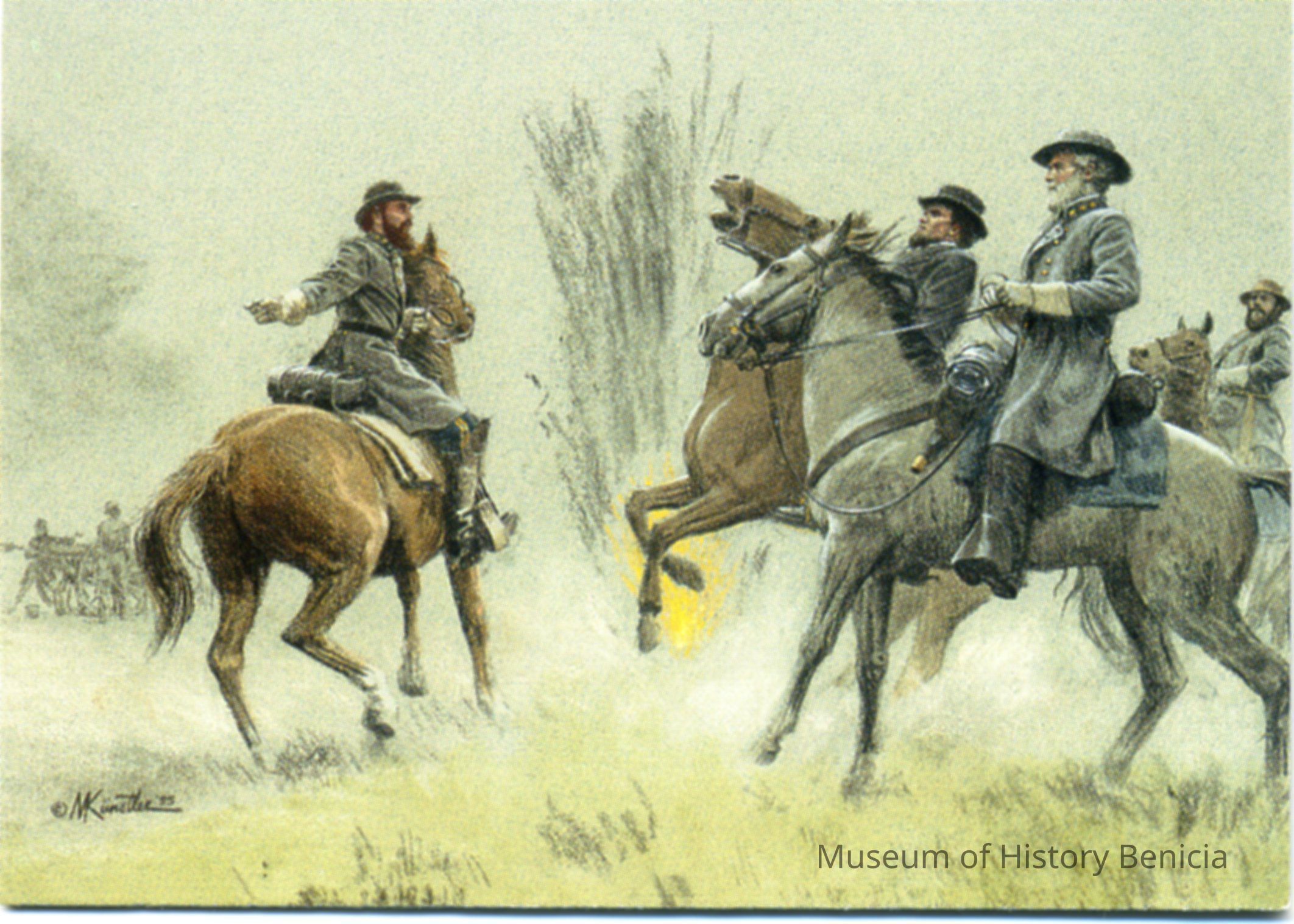 A collectors card for the Civil War from the Keepsake Collectibles company. The set is called "The Blue and the Gray - Civil War Art by Mort Kunstler. Each card has a scene/person on one side and the history of that scene or person on the other side.