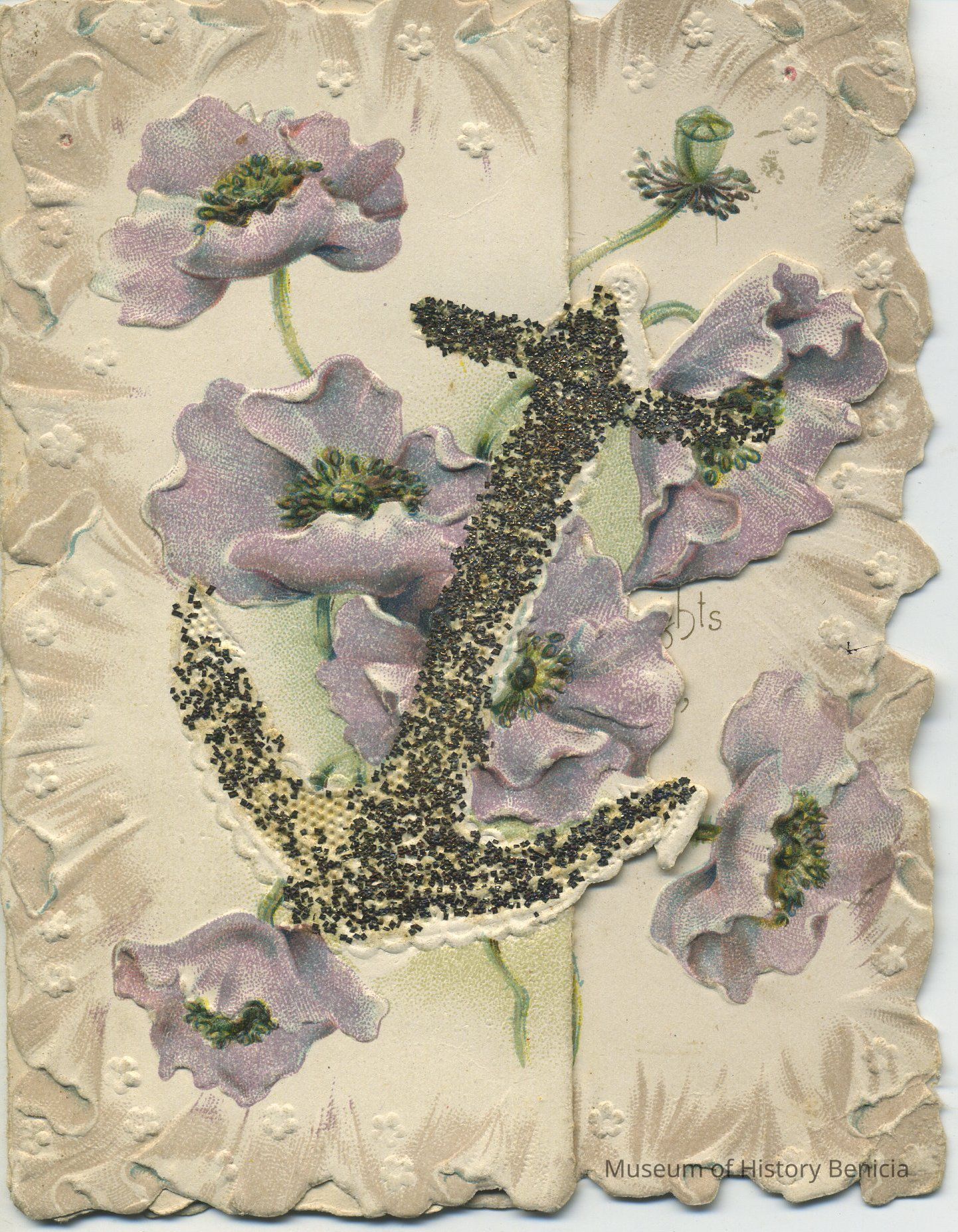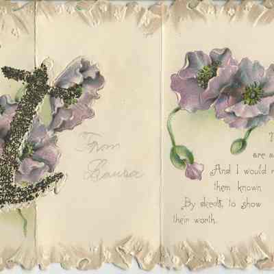 Front and inside - A glitter covered anchor and purple poppies