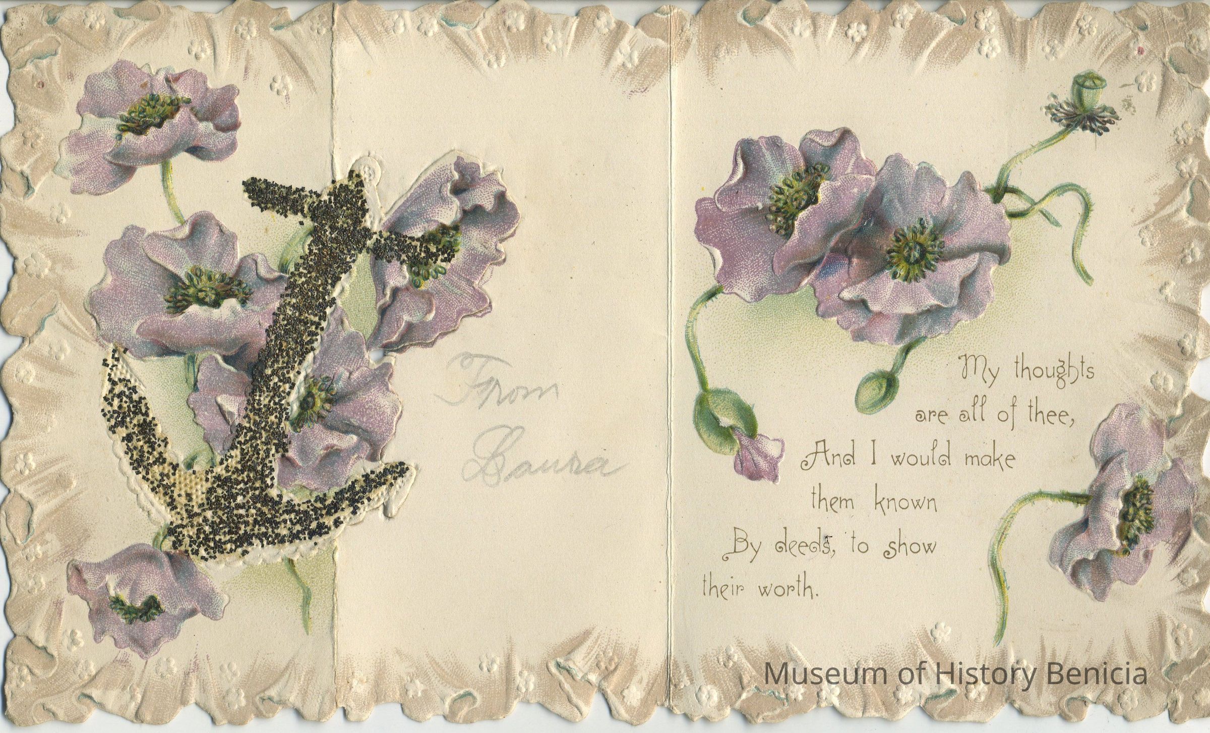 "From Laura" "My thoughts are all of thee,