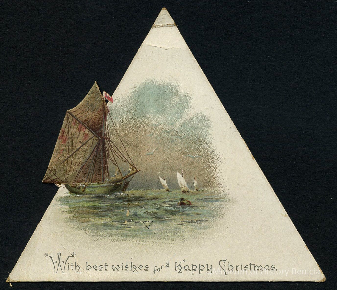 Triangular shaped card with sail boats (a sail sticks out on one side)