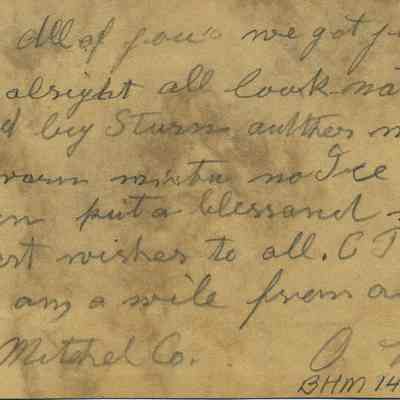 On the back of the card a message written in pencil: