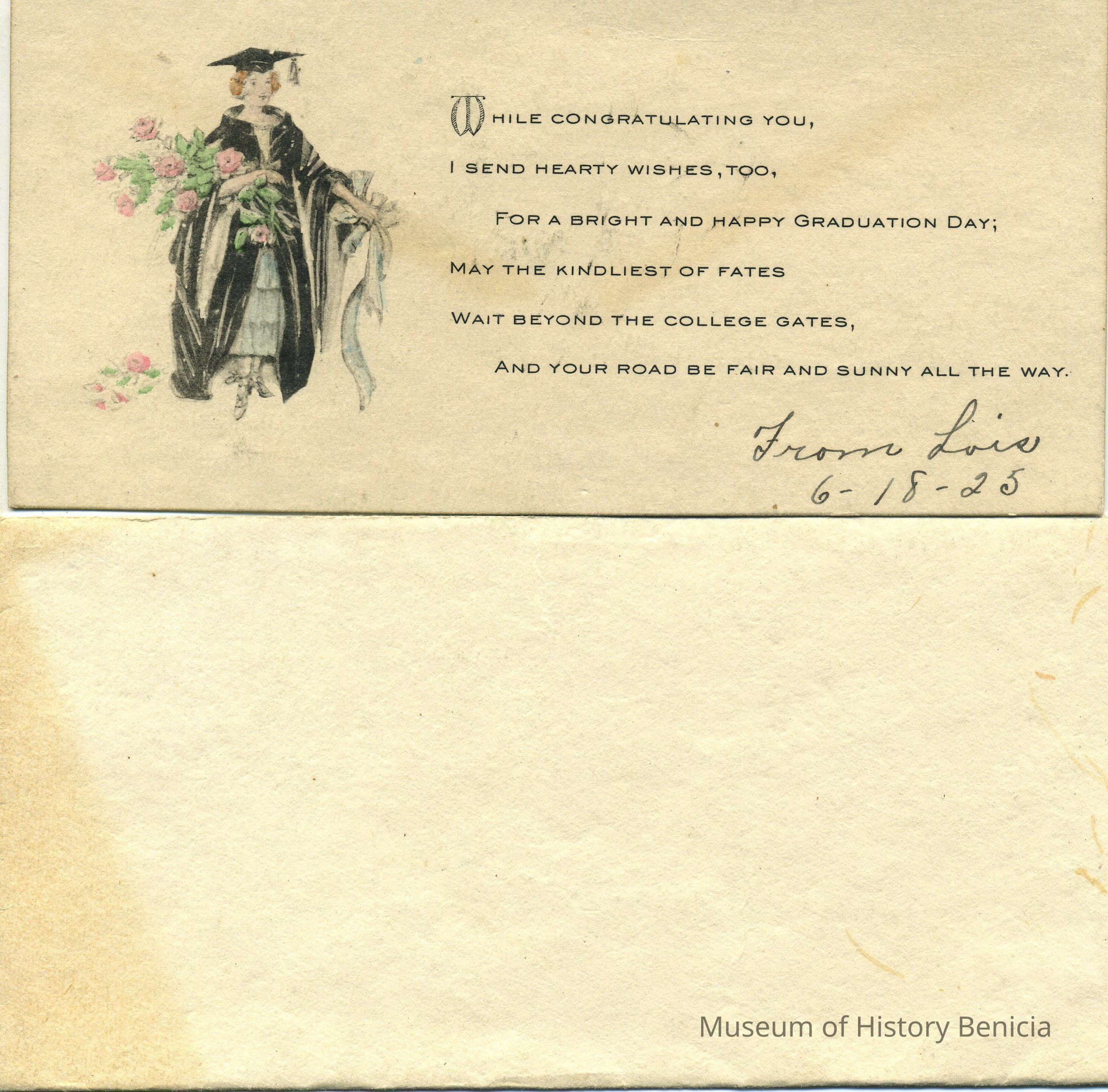 sent to Alice Keneally (Rankin) for her college graduation