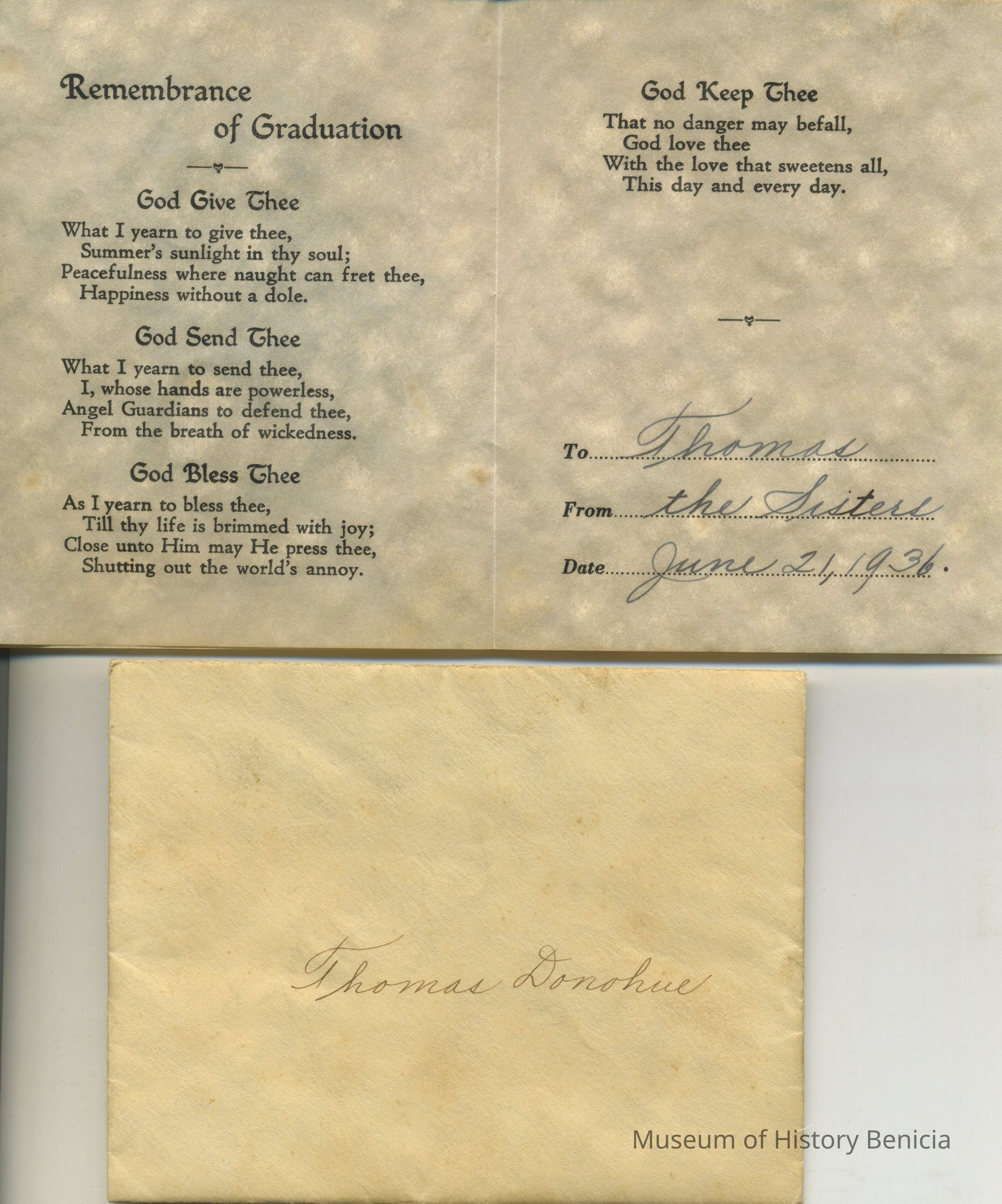 on front: "Thomas Donohue"; 3-5/8" x 4-11/16"Collection