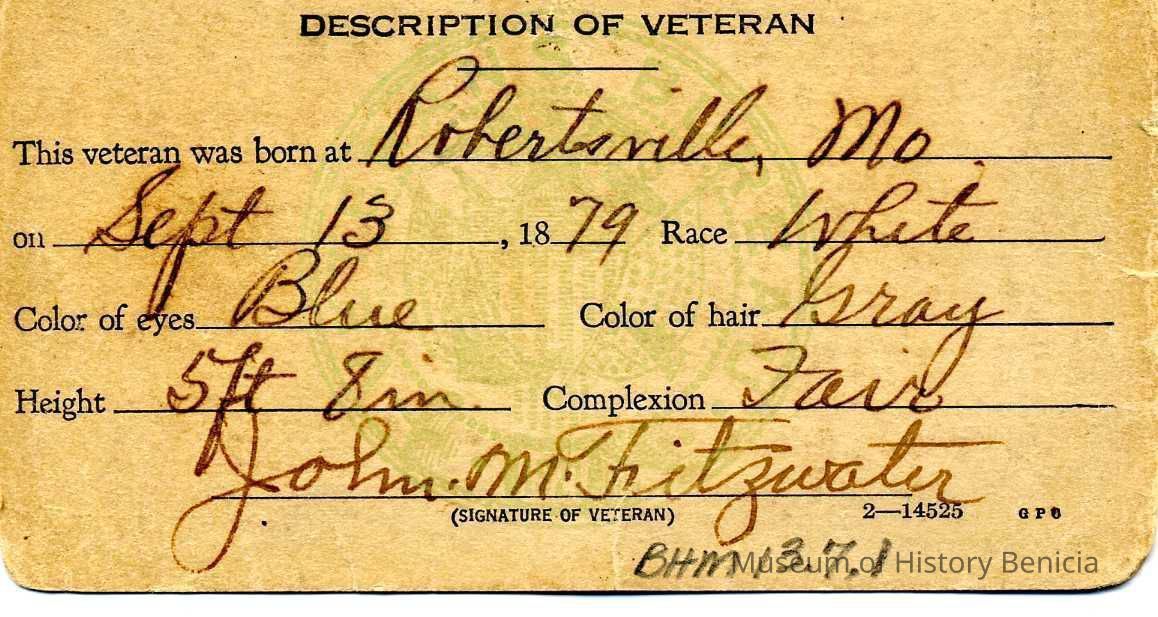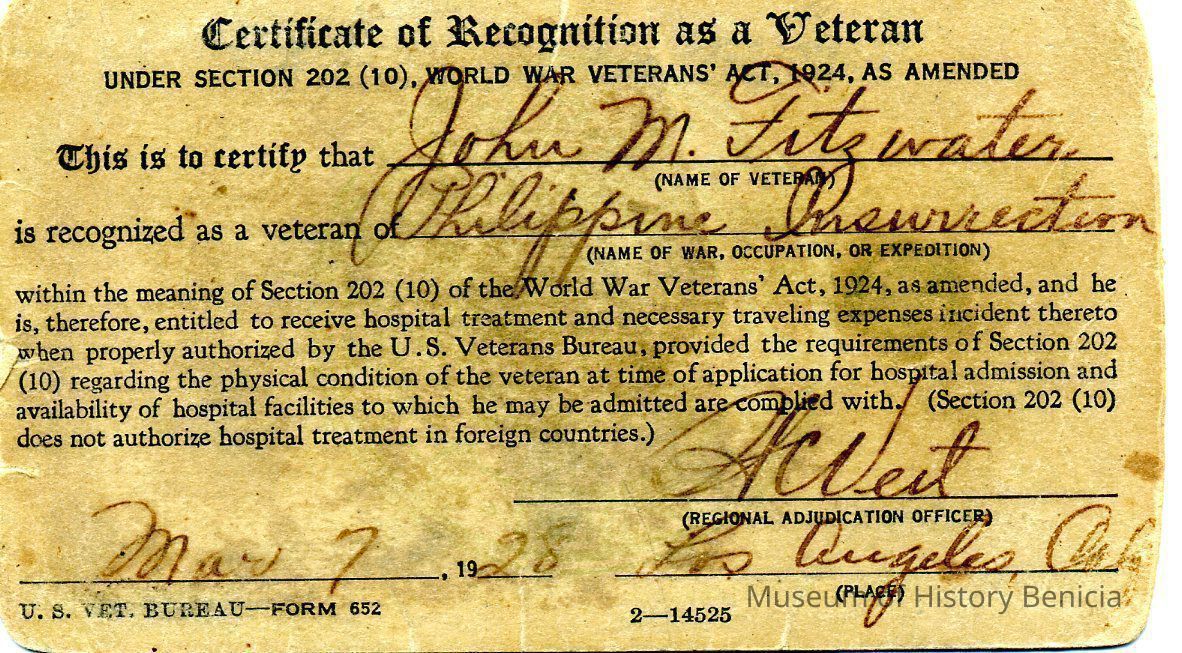 for John M. Fitzwater, veteran of the Philippine Insurrection