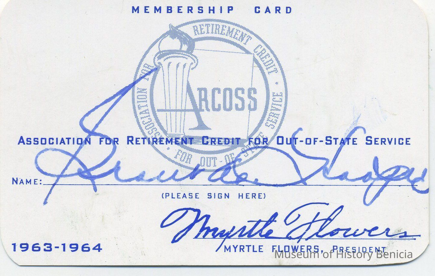 Membership Card - Grant Hooper - Assn. for Retirement - Credit for Out-of-State Service 1963-1964 3-1/2" x 2-1/4"