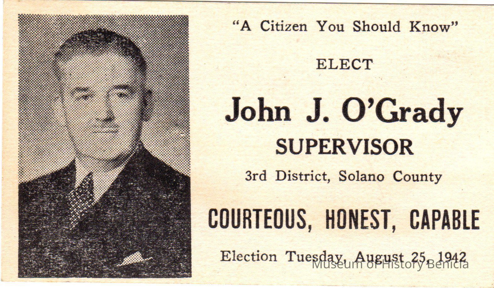 Political card for John J O'Grady 1942