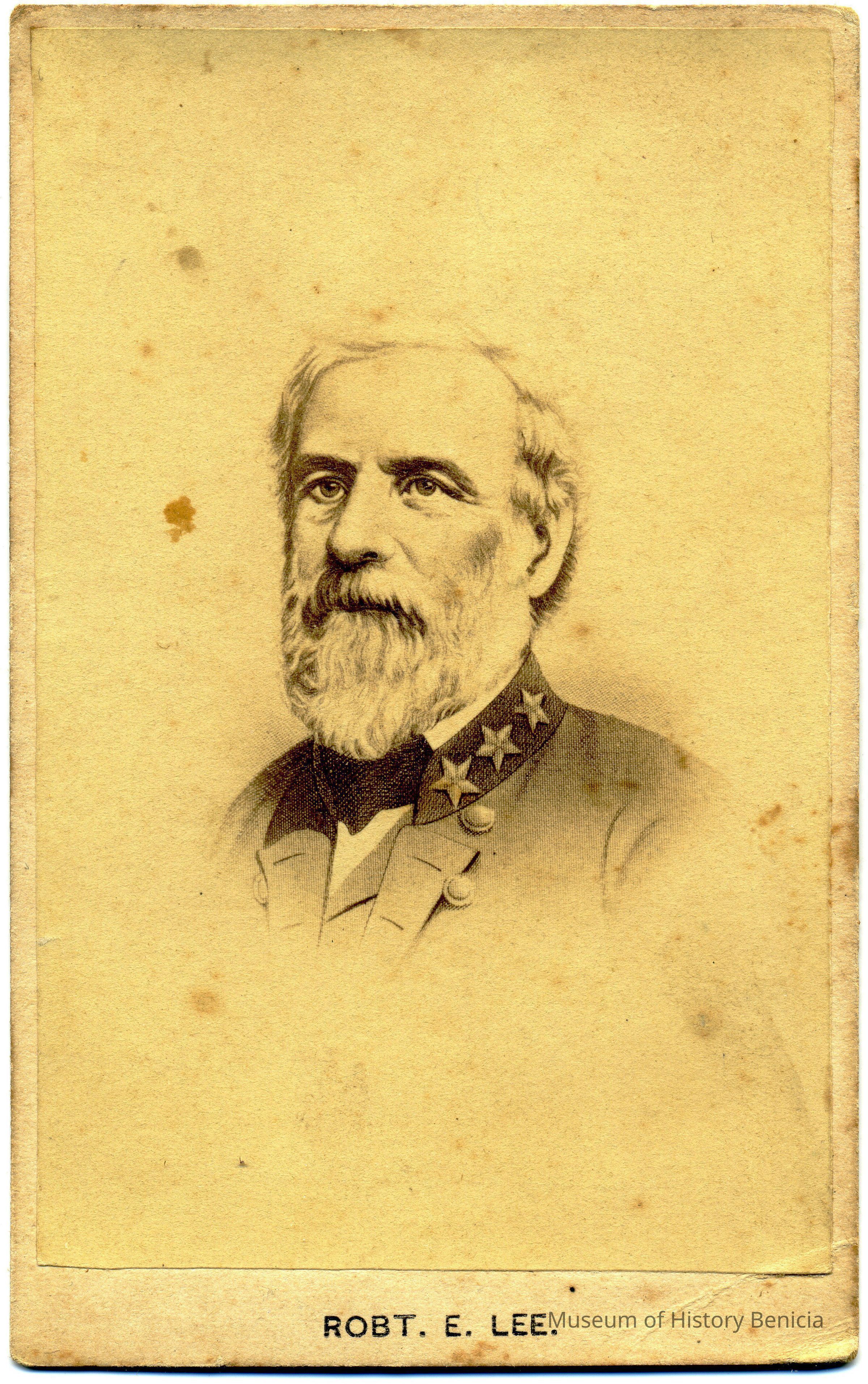 This is a photo from the album described below. It was hidden behind the photo of two children in 2016.099.0067.29. It is a photo of Robert E. Lee in uniform. It may indicate that these people were Confederate sympathiser's.
