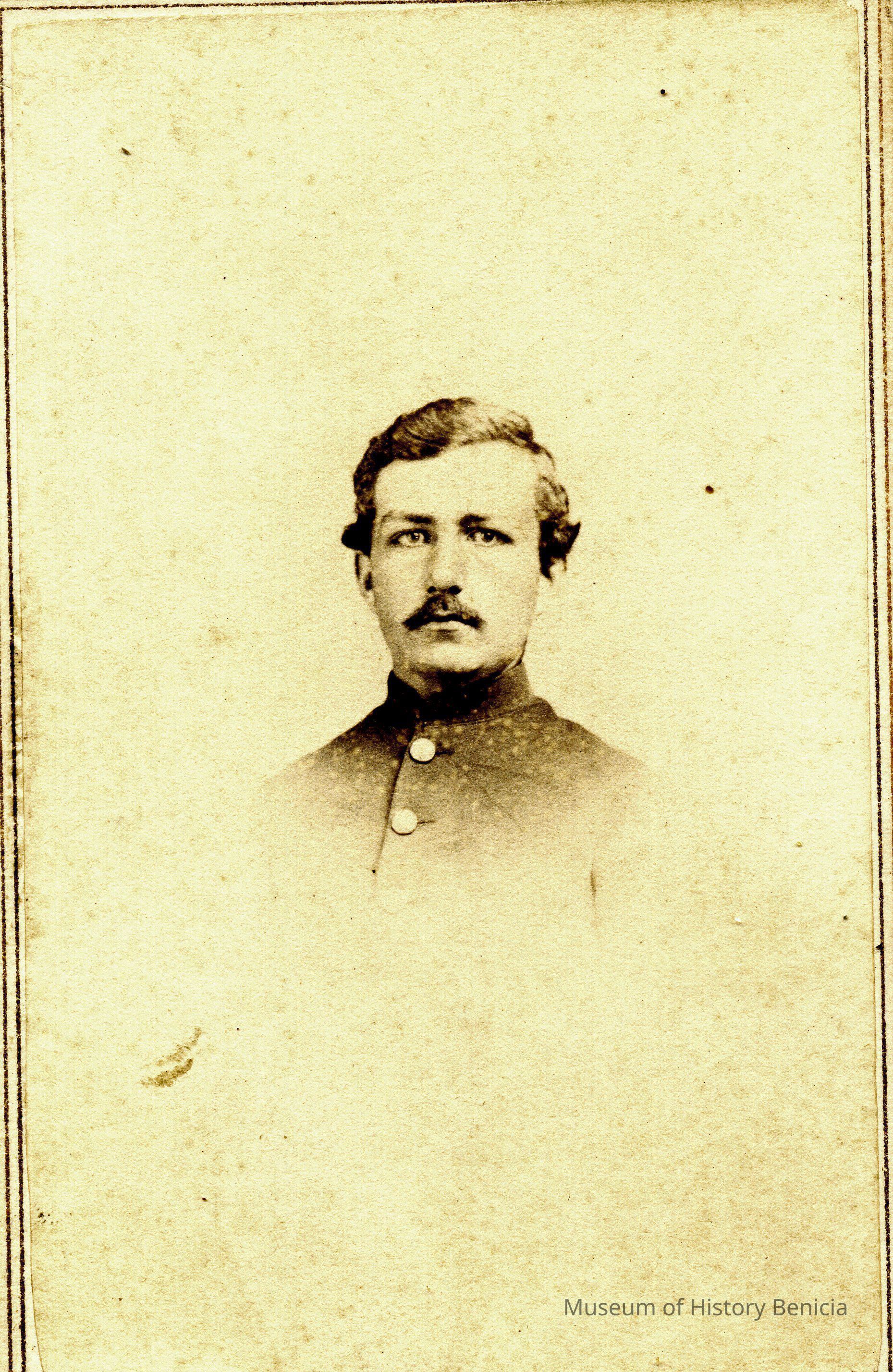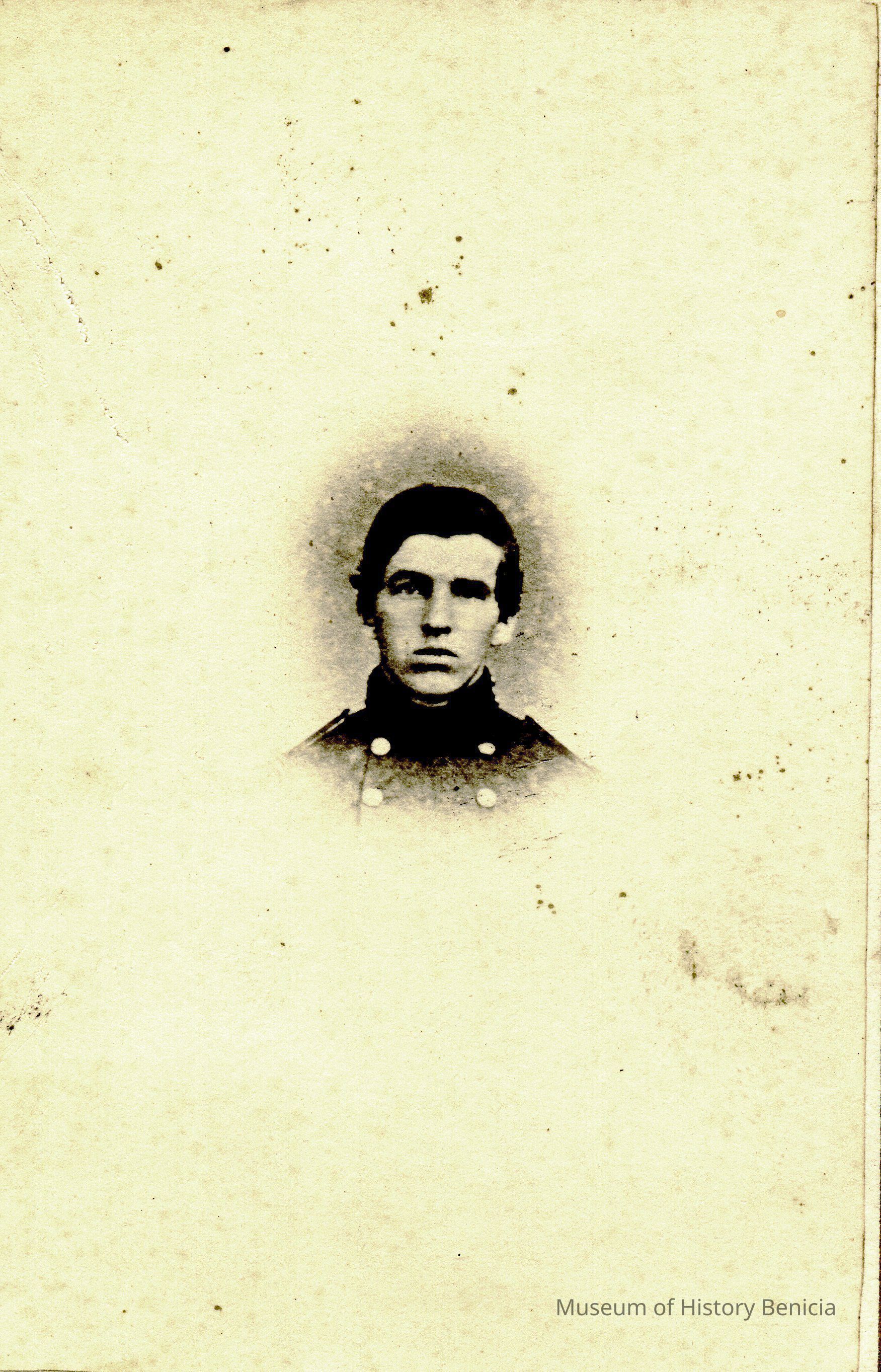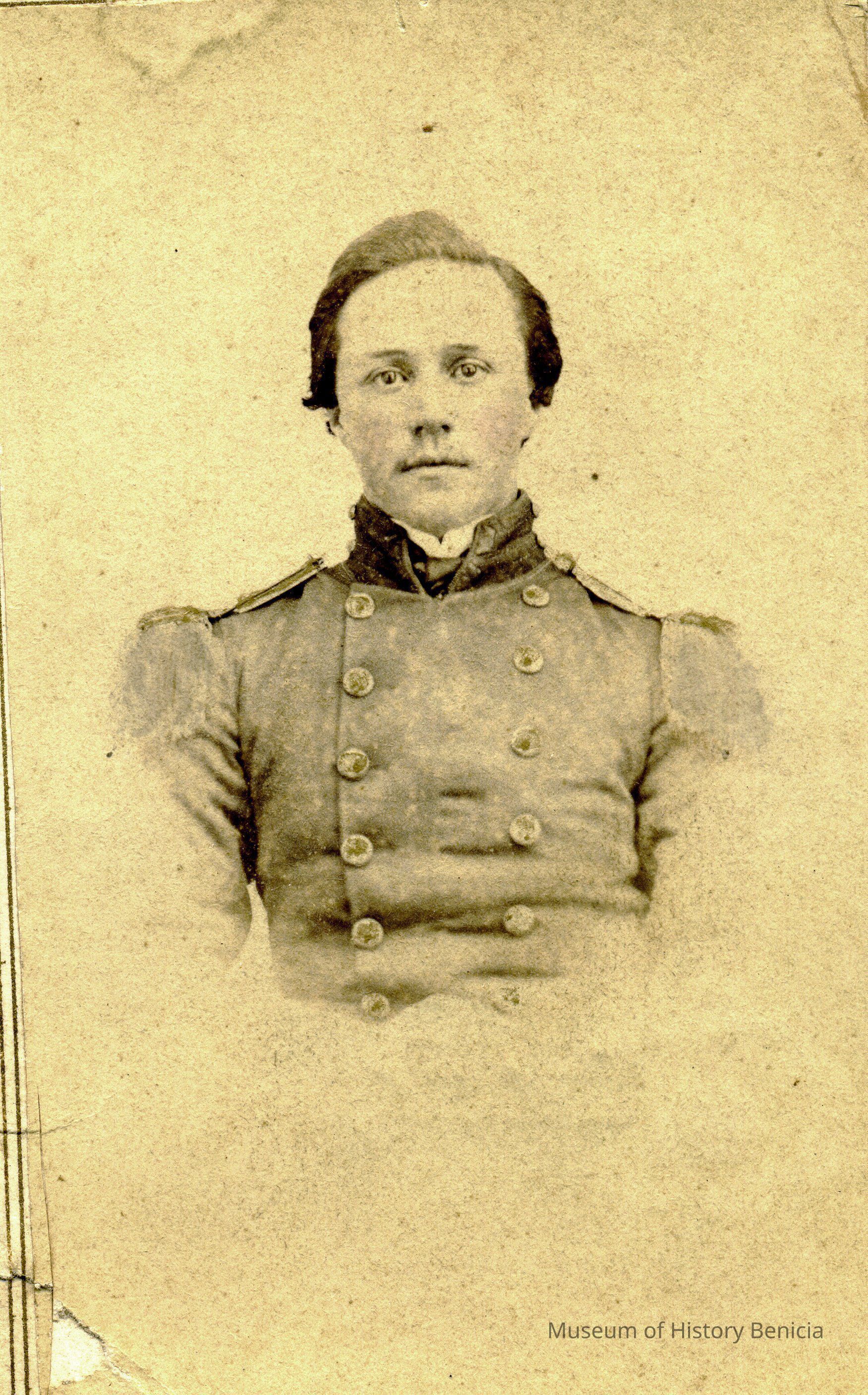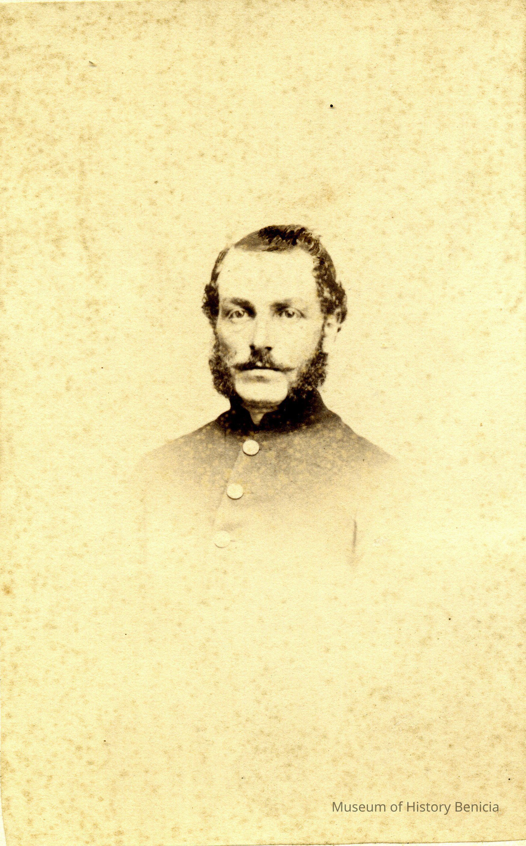 These photos are in the photo album under record number 2017.030.1006. This album belonged to Lyman M. Sherwood. This is Lyman M. Sherwood who was born 02/20/1843 in Le Raysville, PA. He died in Livermore, Alameda Cty, CA on 01/17/1925. He was on the ship Saranac which patrolled along the West Coast around 1860. Many of the photos in the album are of sailors from that ship.