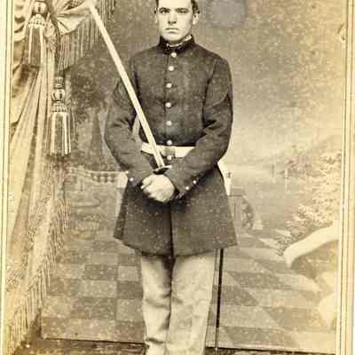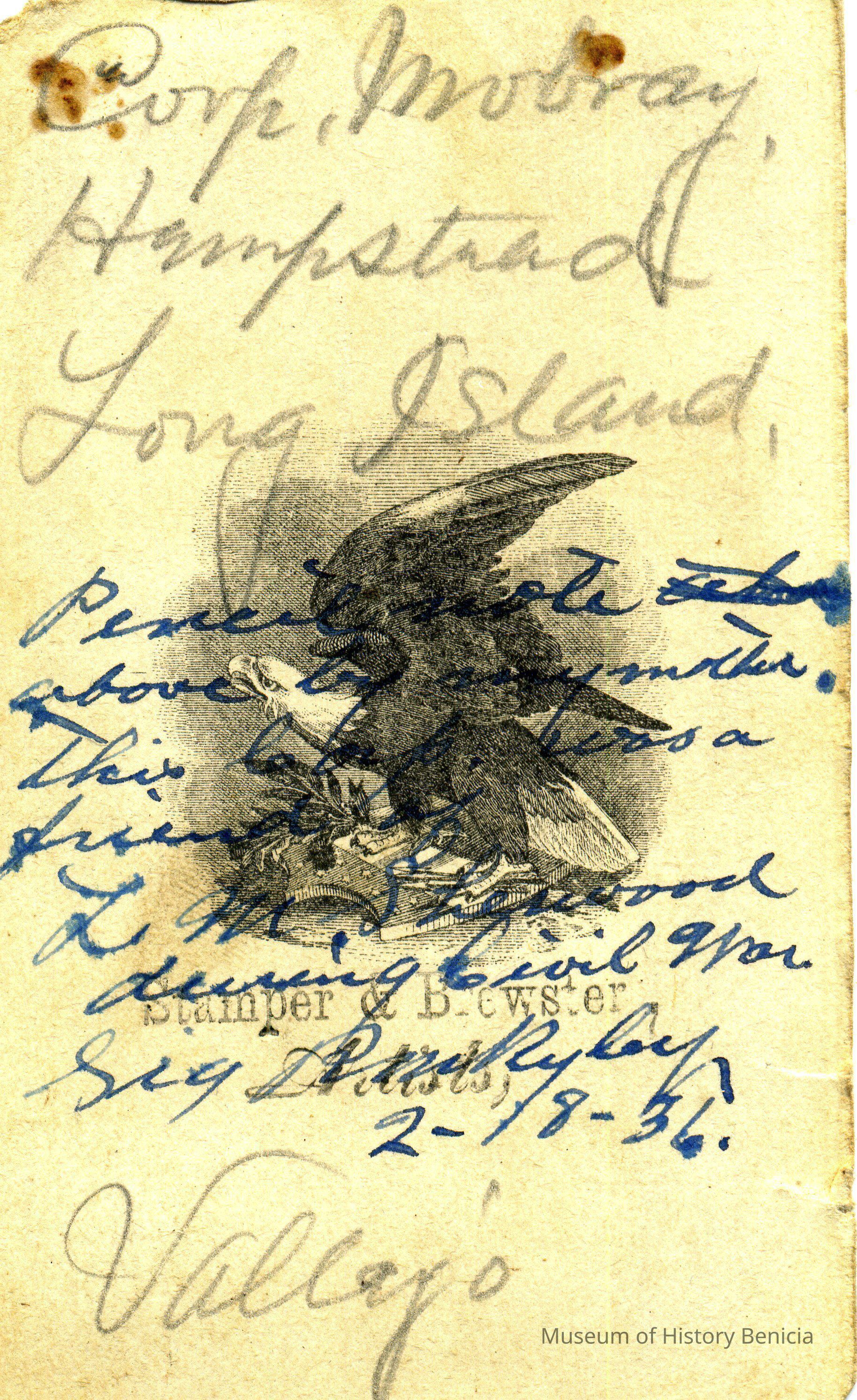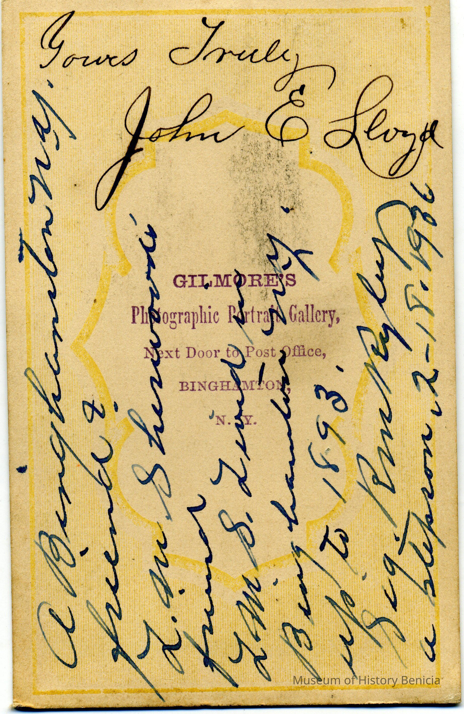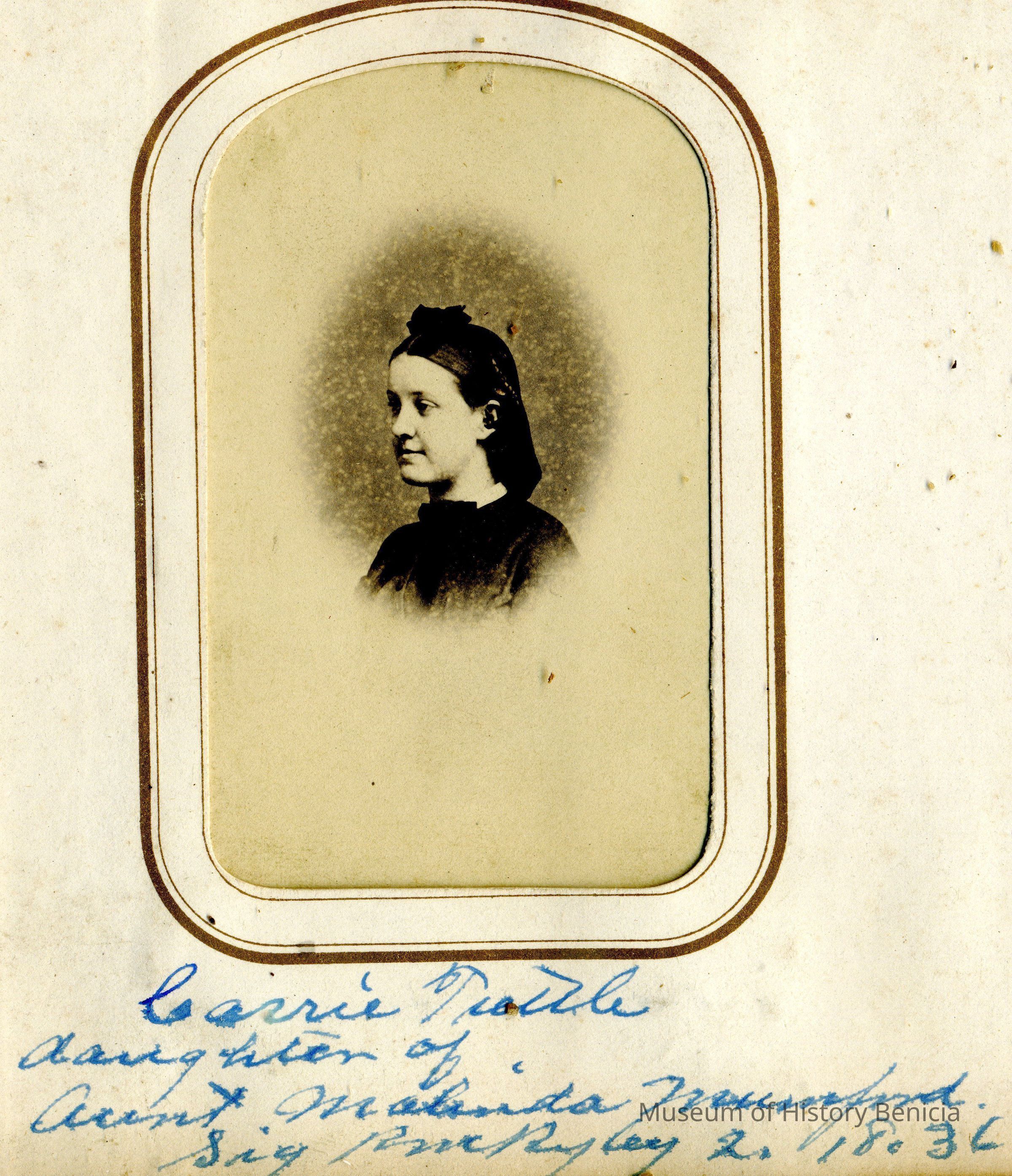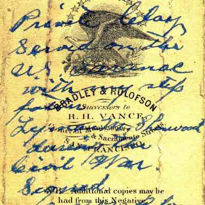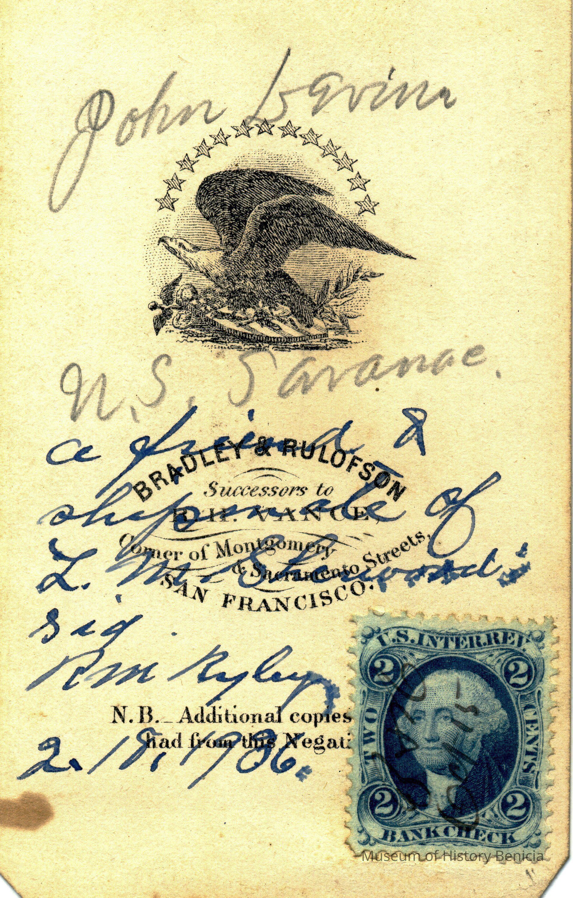 These photos are in the photo album under record number 2017.030.1006. This album belonged to Lyman M. Sherwood. This is Lyman M. Sherwood who was born 02/20/1843 in Le Raysville, PA. He died in Livermore, Alameda Cty, CA on 01/17/1925. He was on the ship Saranac which patrolled along the West Coast around 1860. Many of the photos in the album are of sailors from that ship.