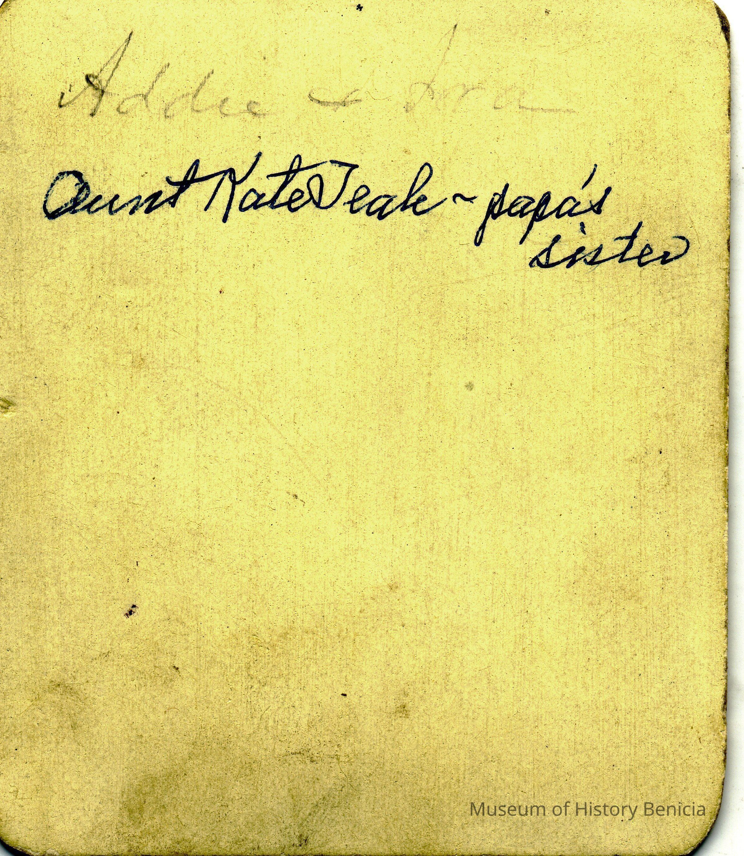 The Teale's owned a furniture store, Teale & Parker, on First Street Benicia. This could be Kate Parker Teale (1858-1918) who married George Washington Teale in 1879.Collection