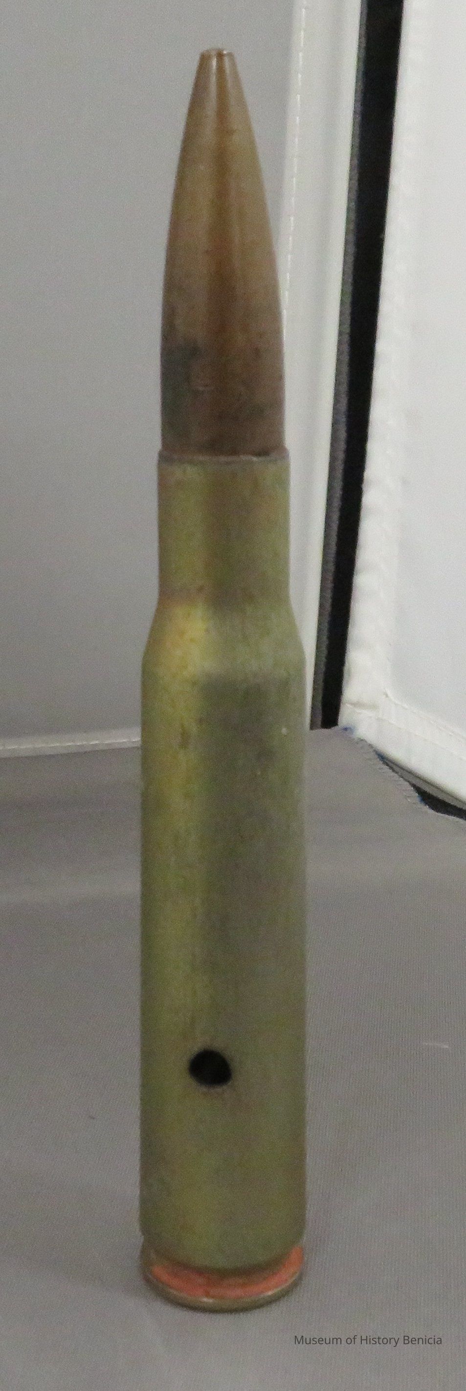 50 Caliber Machine gun cartridge. The powder and primer have been removed.