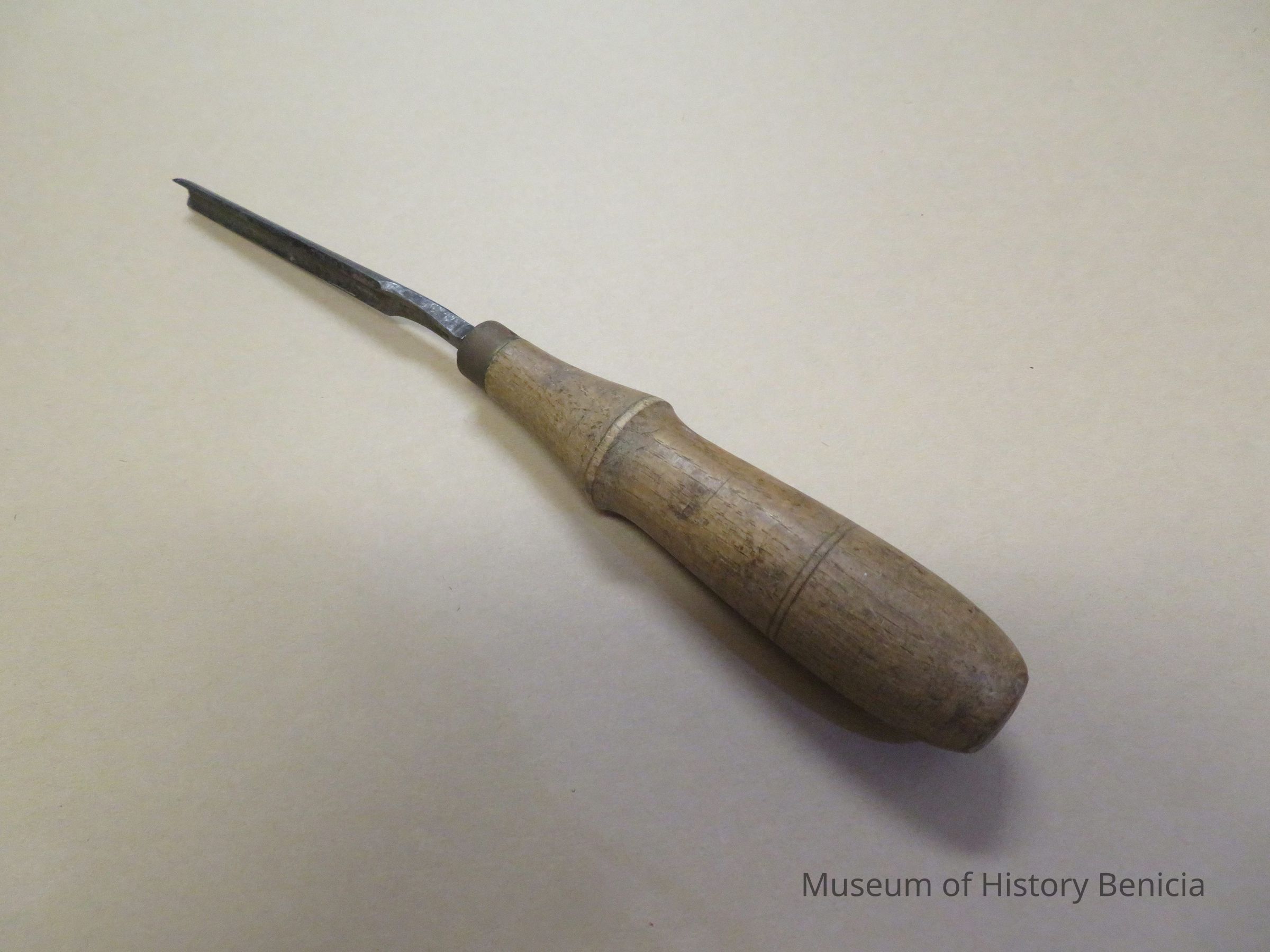 Carving tool "U" shaped blade, 1" x 9 1/2", wood and cast steel. Vintage tool.