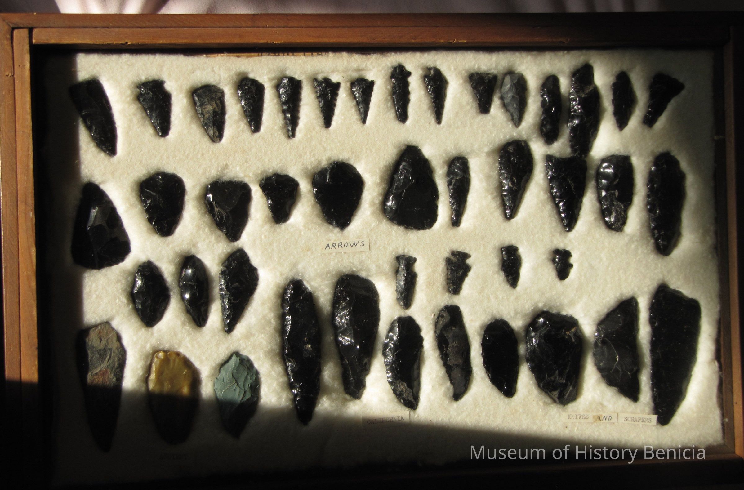 Display case containing 44 arrowheads and scrapers, Indian. marked case No 2 / H Lerch / 308-07-7537 / Y0623490Collection