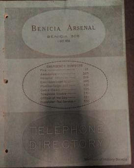 Blue paper copy of the 1956 Benicia Arsenal Phone Directory
