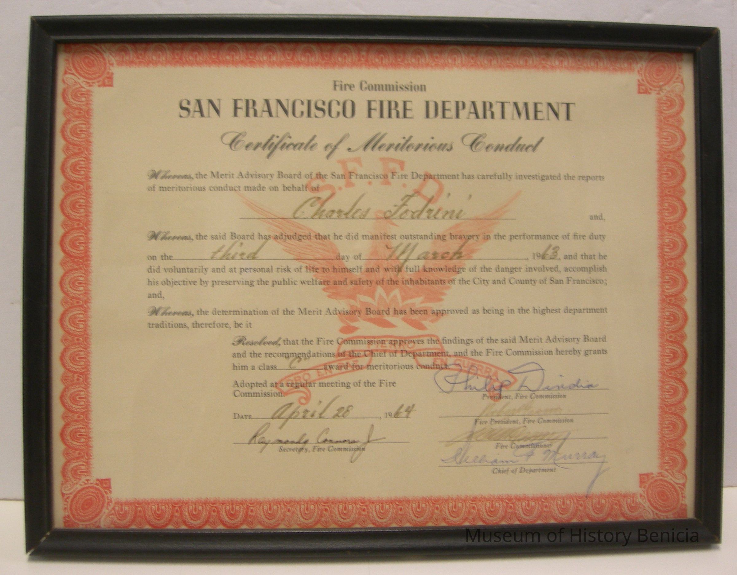 Whereas, the Merit Advisory Board of the San Francisco Fire Department has carefully investigated the reports of meritorious conduct made on behalf of