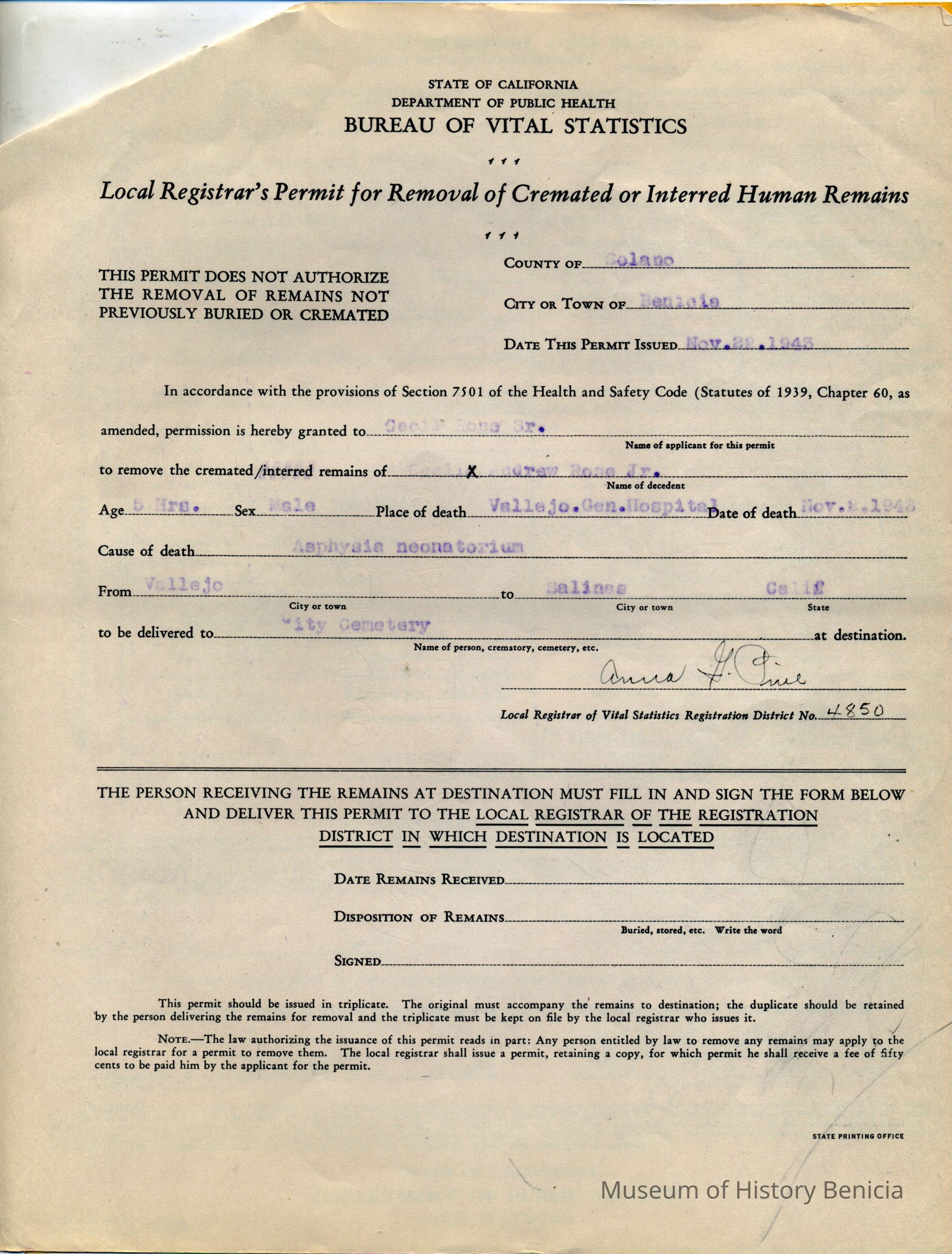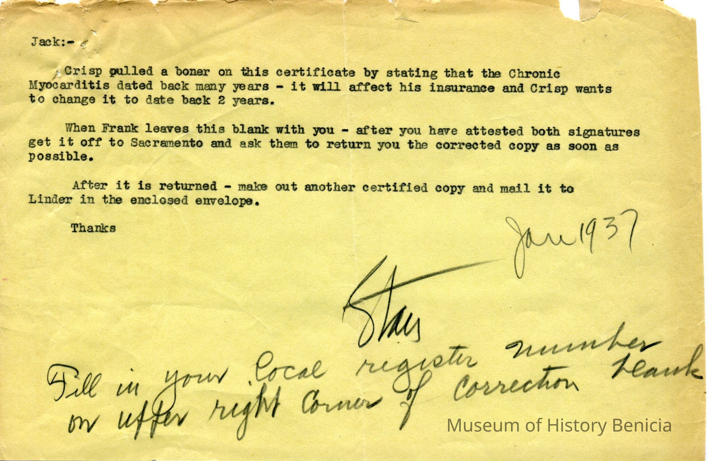 The documents are being kept in the Benicia Historical Museum Research library. Copies can be requested by phone or in person.Collection