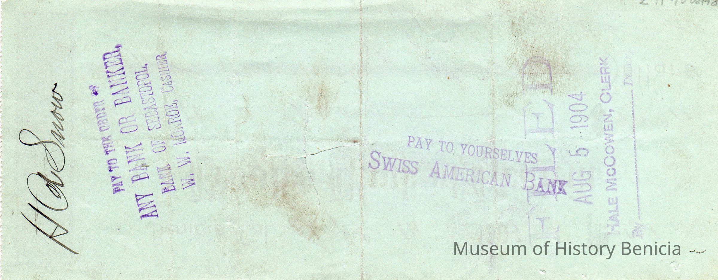 Check from the Peoples Bank of Benicia No. 41 for $200