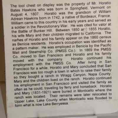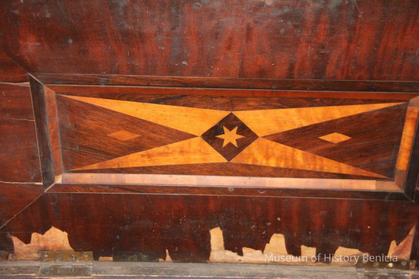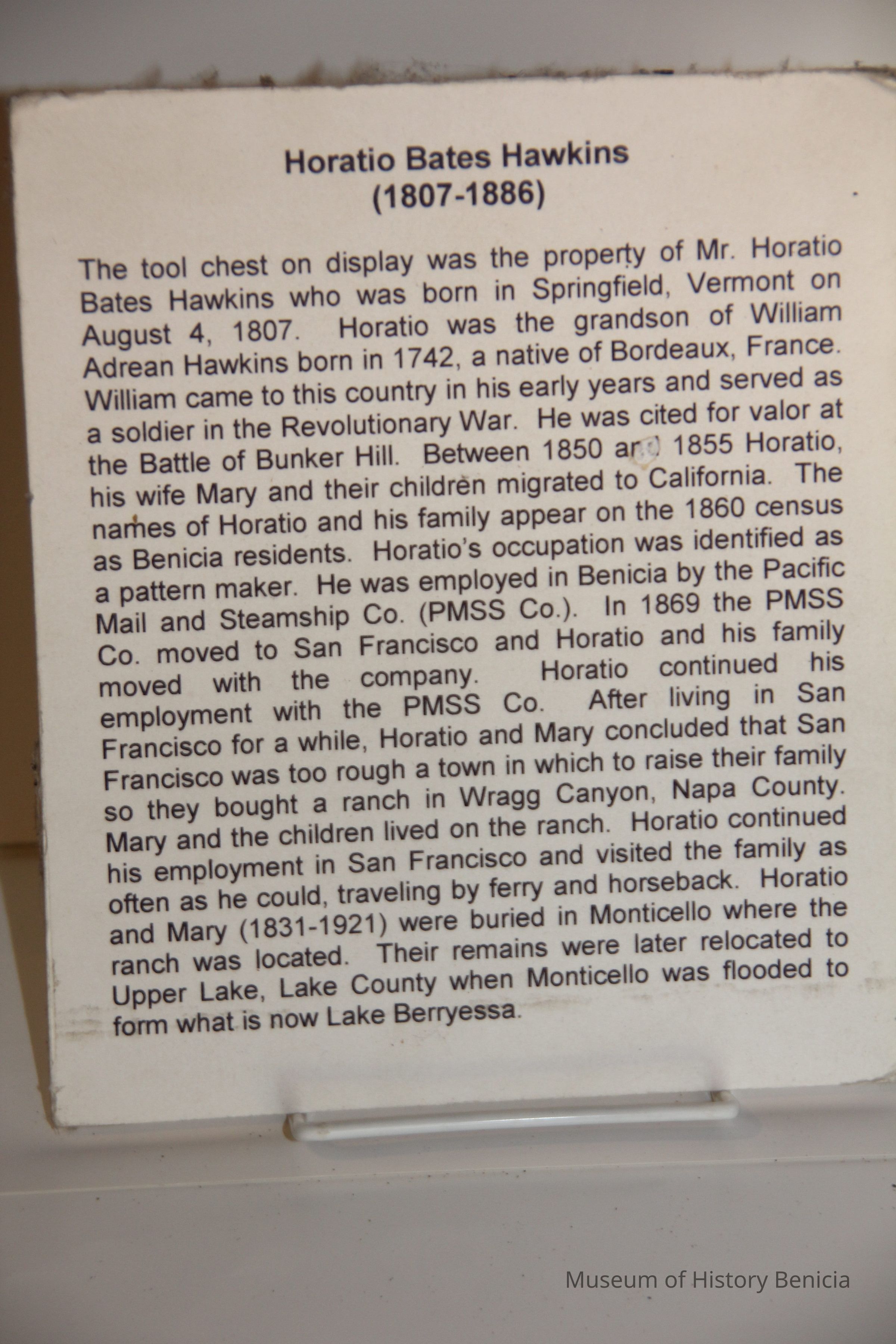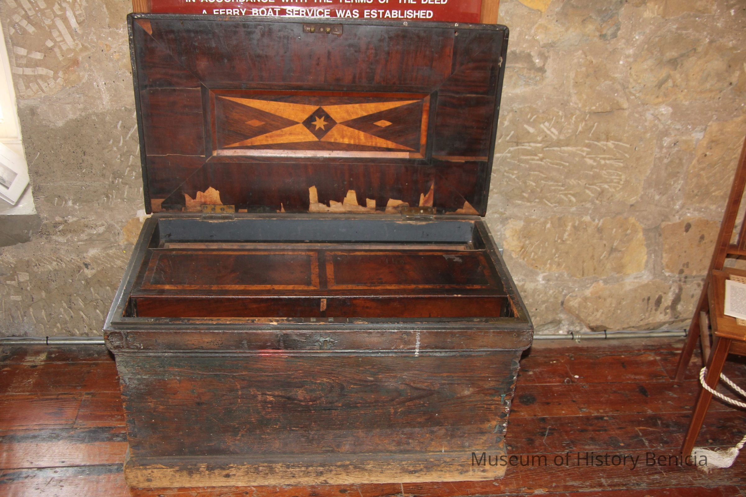 Originally the chest was the property of Horatio B. Hawkins, a carpenter at Pacific Mail Steamship Company in Benicia.