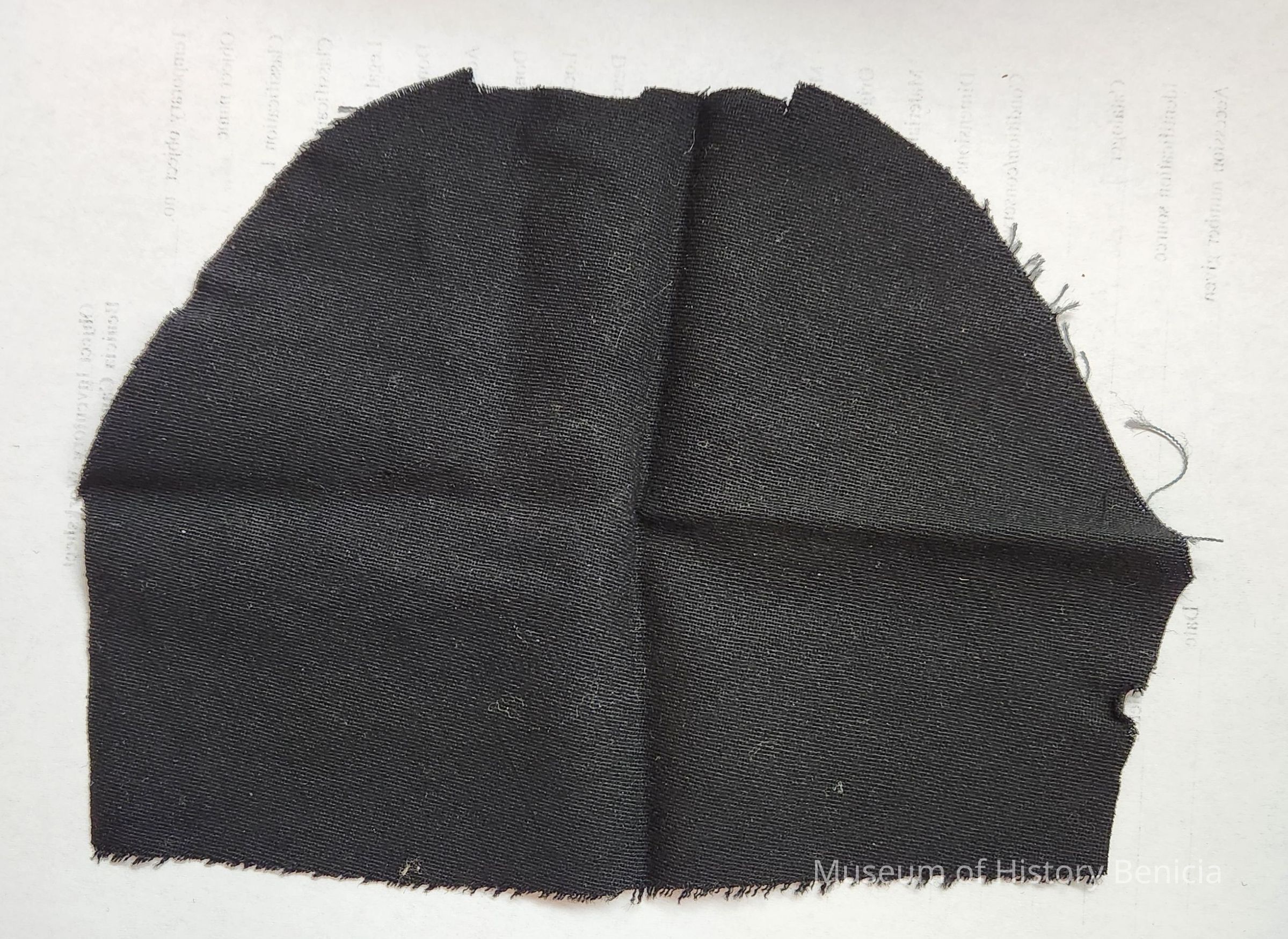 Piece of black wool cloth from a section of a nun's habit at St. Catherine's Academy.