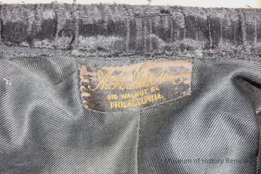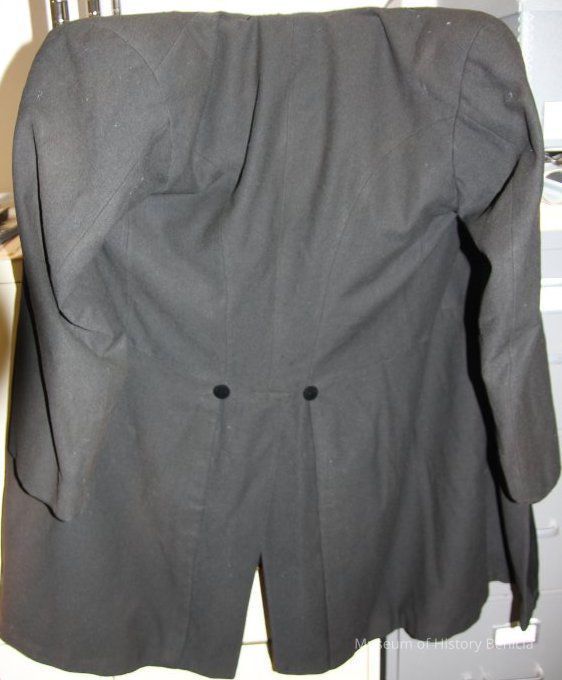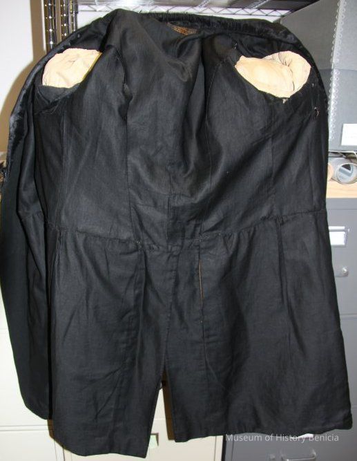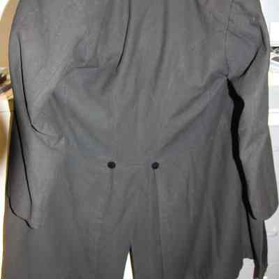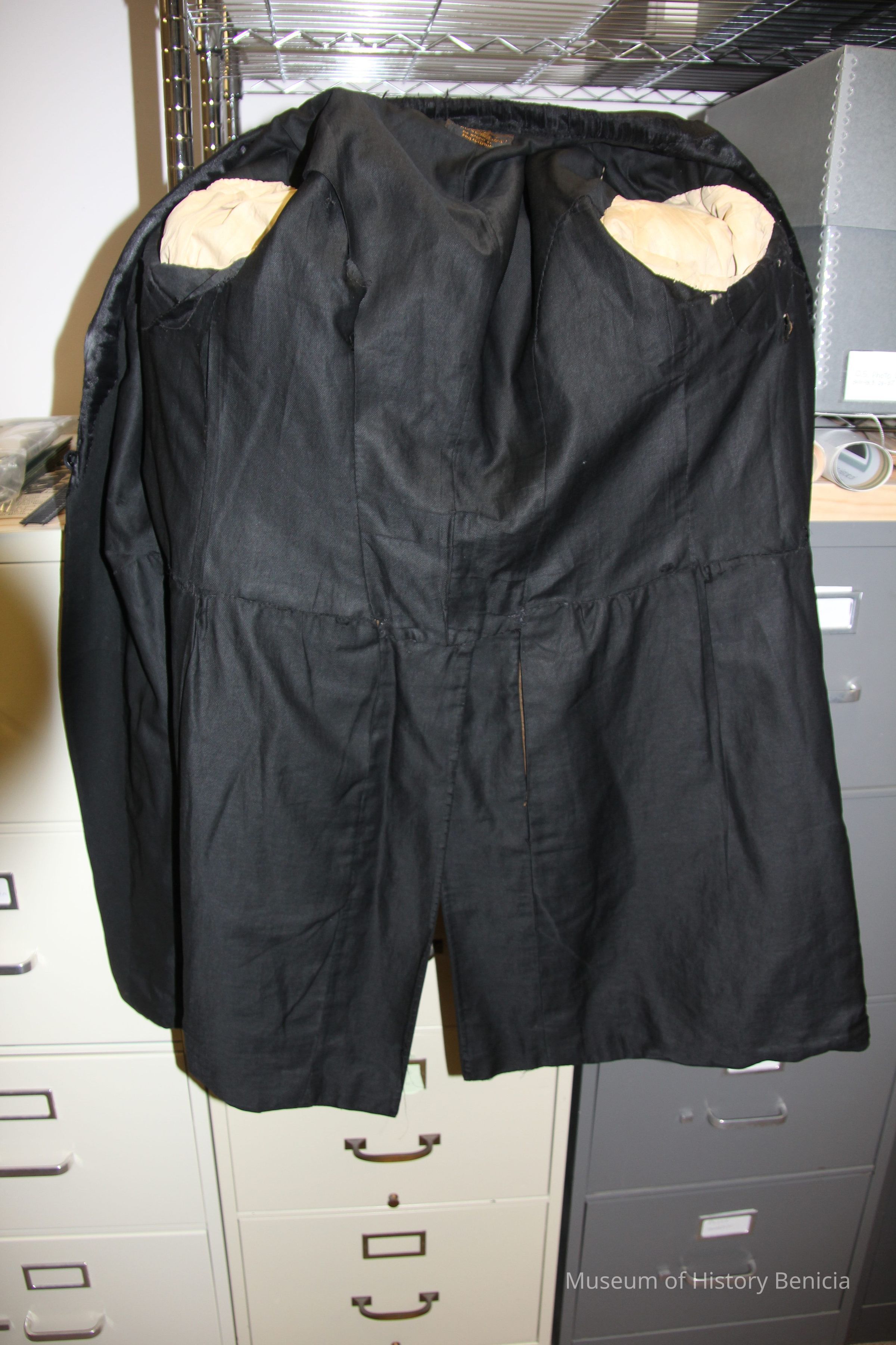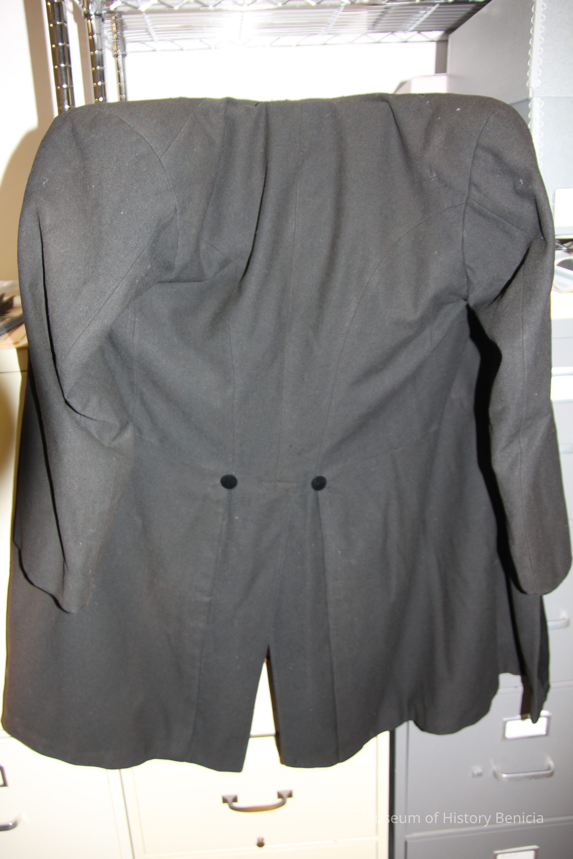 Top coat worn by Jack O'Grady. It is a wool blend top coat with satin lapels. Made by A.H. Jackson of Philadelphia, PA. It is lined and has a dart in back.