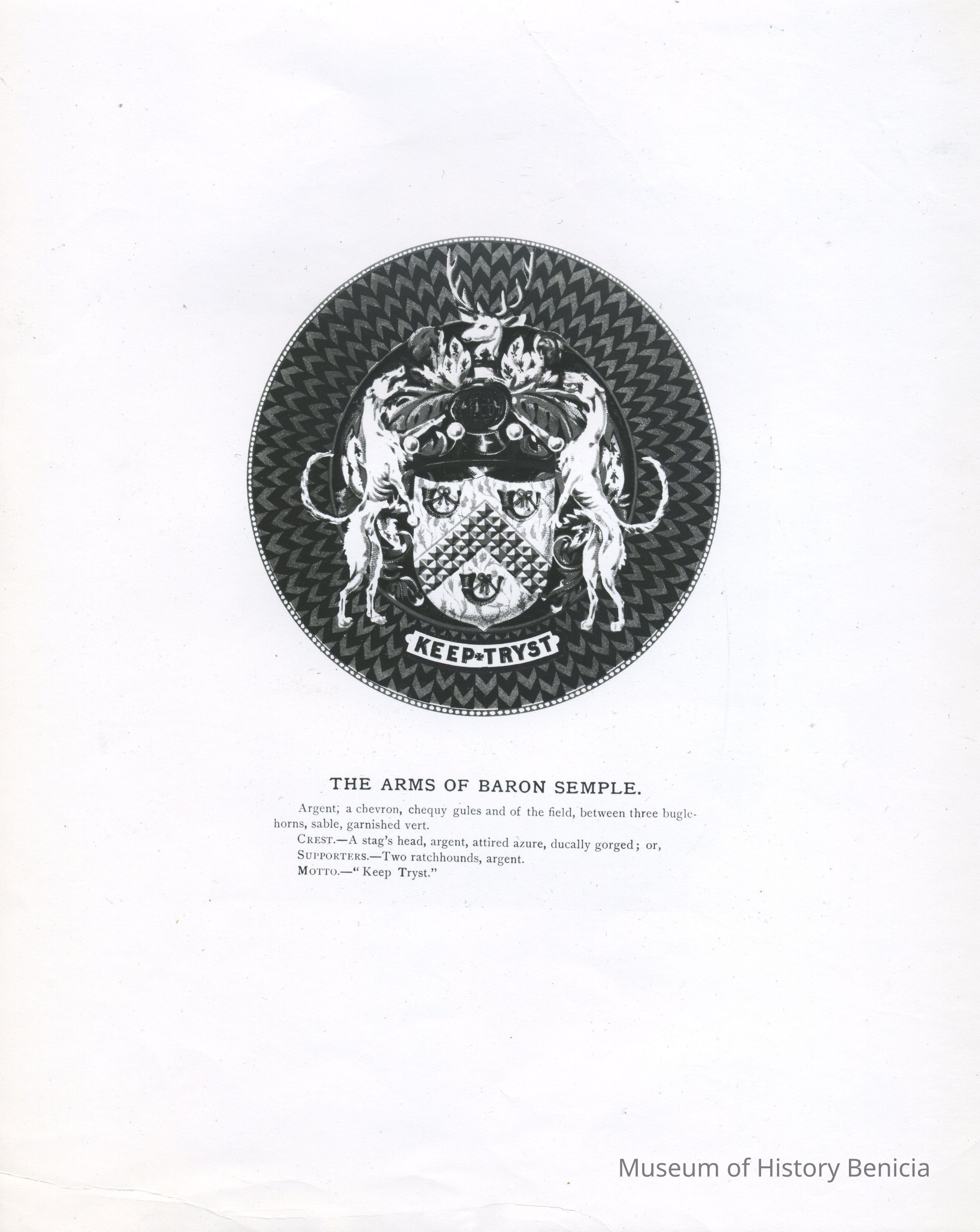 This is included in a collection of letters and documents for a forthcoming book published in 1950. Mr Wohlgemuth was contributing chapters to a four volume history of Free Masonry in California which was published in 1950. He was researching Dr. Robert Semple and events of that era. The volumes are available for reference in the Benicia Public Library.Collection