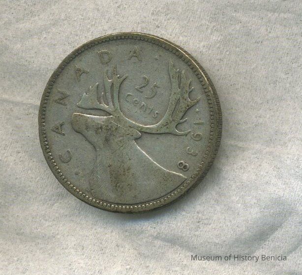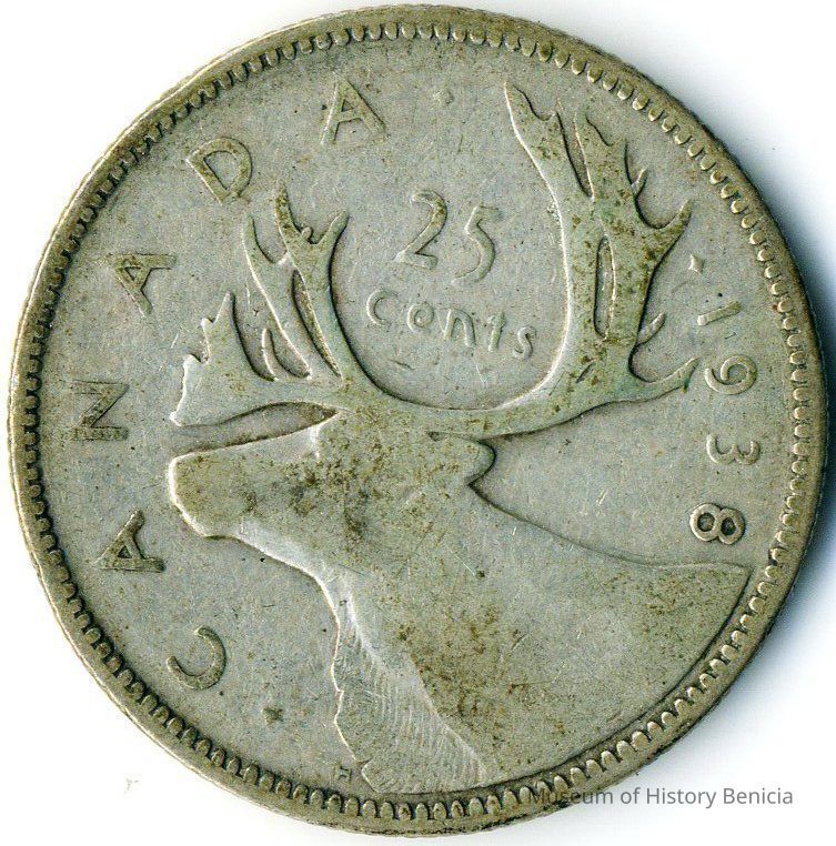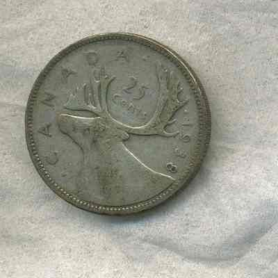 Coin - twenty-five cent Canada 1938 - Elk Head on reverse; King George VI on obverse.