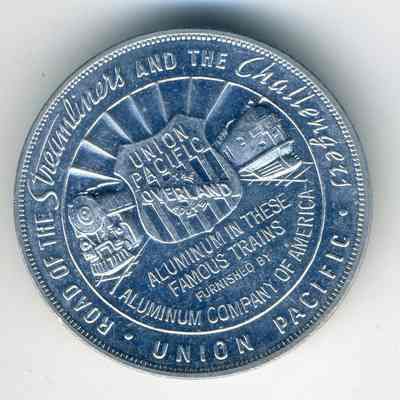 Reverse: Union Pacific, Road of the Streamliners and Challengers, Aluminum in these Famous Trains furnished by Aluminum Company of America (Trains pictures)Collection