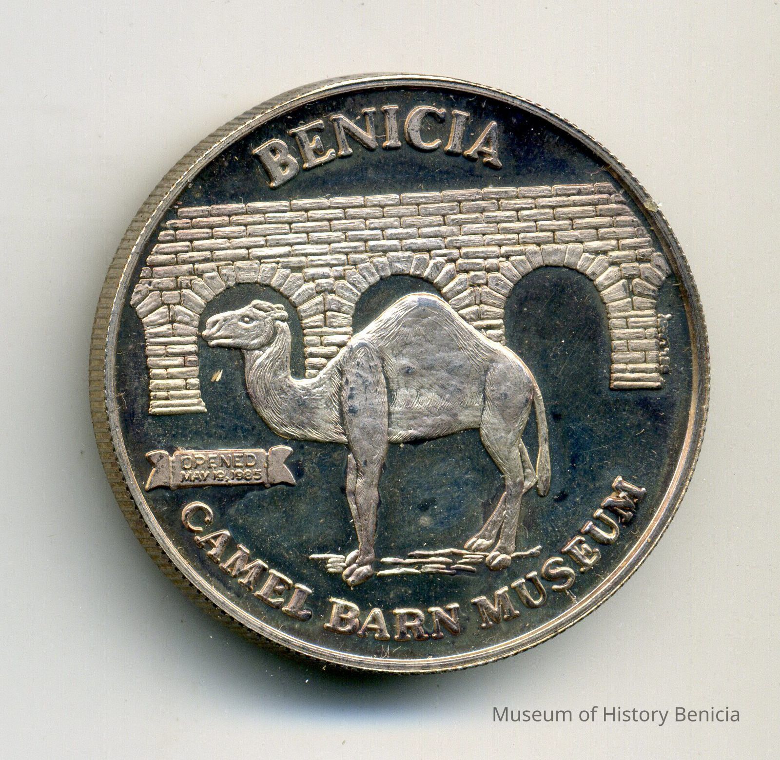 Obverse: Camel Barn Museum, Benicia, Opened May 19, 1985 (Camel and Gallery 9 pictured)