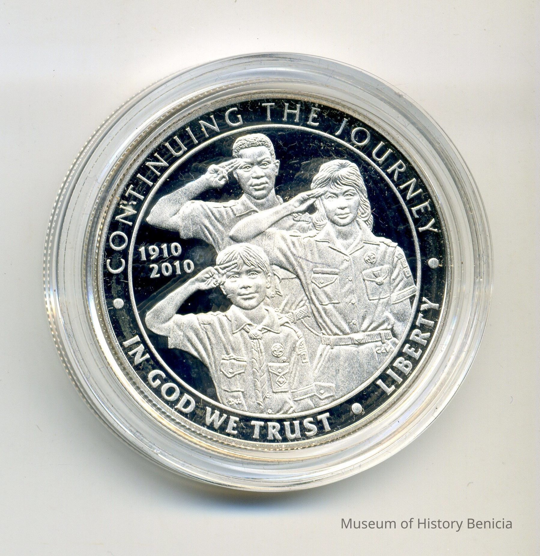 Obverse: Continuing the Journey, In God We Trust, Liberty, 1910-2010 (Boy and girl scouts pictured)