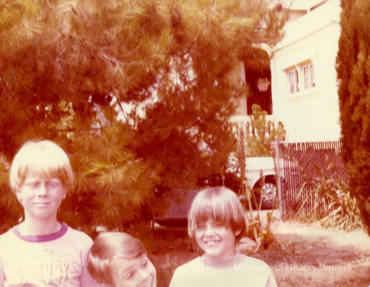 Color Photograph - three children outdoor. They are identified as Robert, Eddie and Mike.