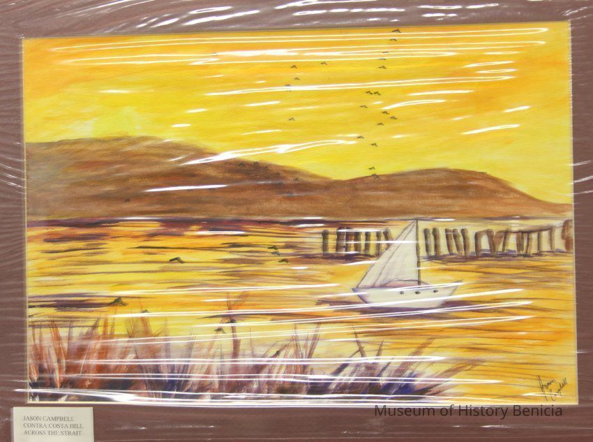 "Contra Costa Hills" (across the Carquinez Strait from Benicia) watercolor painting done by Jason Campbell in 1995, a Benicia Middle School student matted and mounted on foamcoreCollection