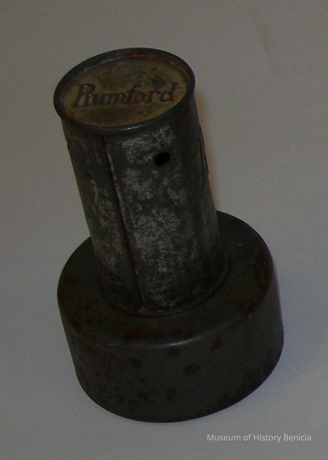 pastry/doughnut cutter, tube shaped including handle; "Rumford" on top and side of handle