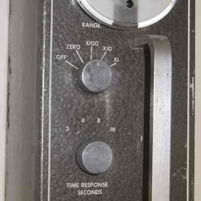 Detectron Nucliometer model DR-290. This is an early radiation detector used for finding Uranium. It was made in North Hollywood, CA. It is housed in a green metal box that allows the inner workings to be extracted for repair.
