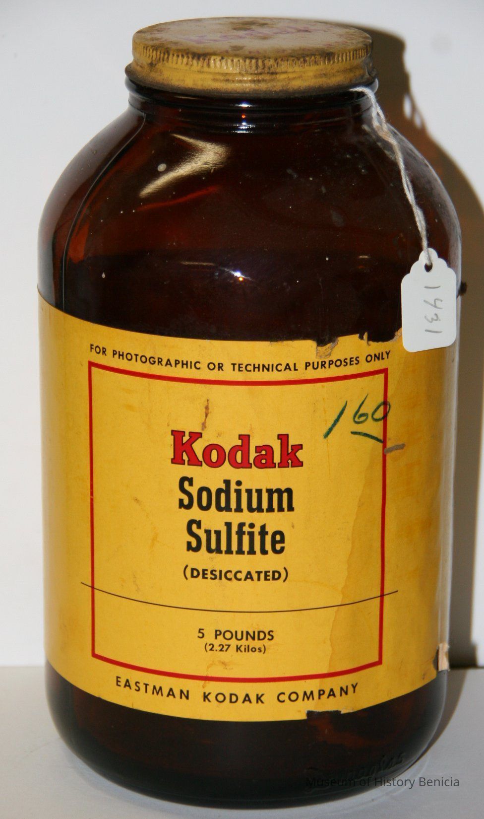 Empty bottle of 5 pound Kodak Sodium Sulfate chemical for photo developing. Inventory sheet #1431 says this was found in the store room. No donor number recorded in the inventory book.Collection
