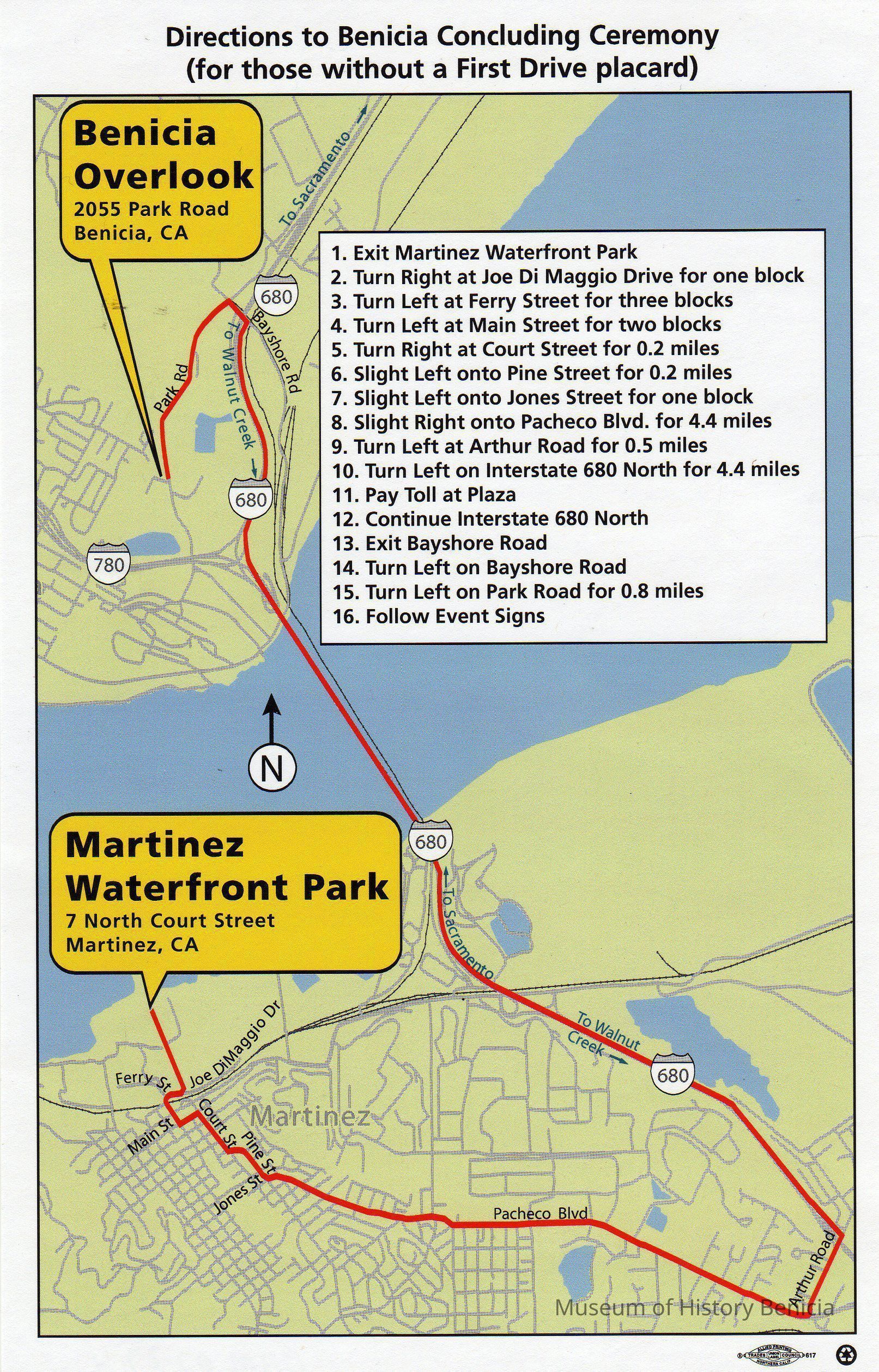 Directions to Benicia Concluding CeremonyEntry/Object ID
