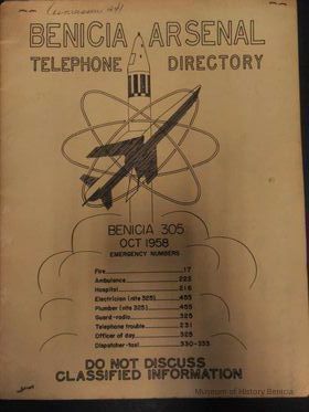 Yellow Paper Benicia Arsenal Telephone Directory October 1958